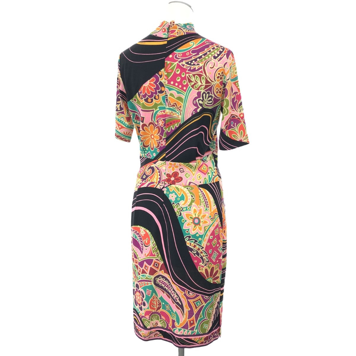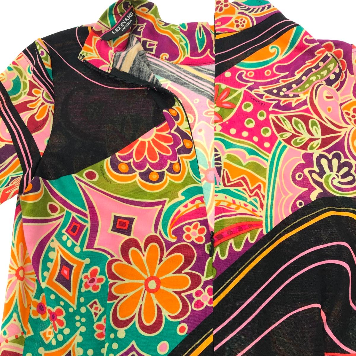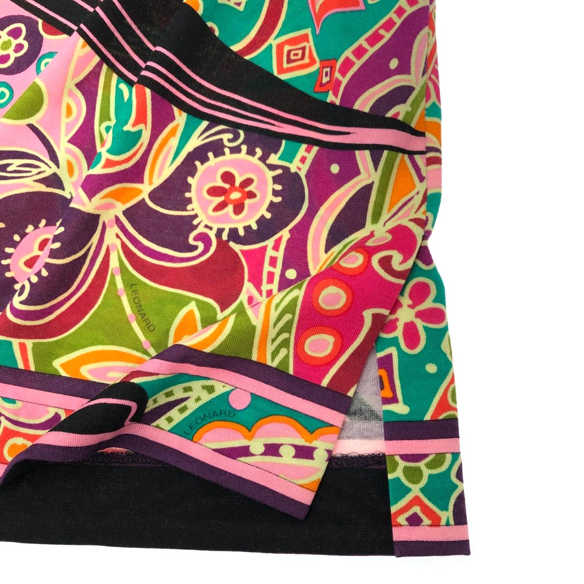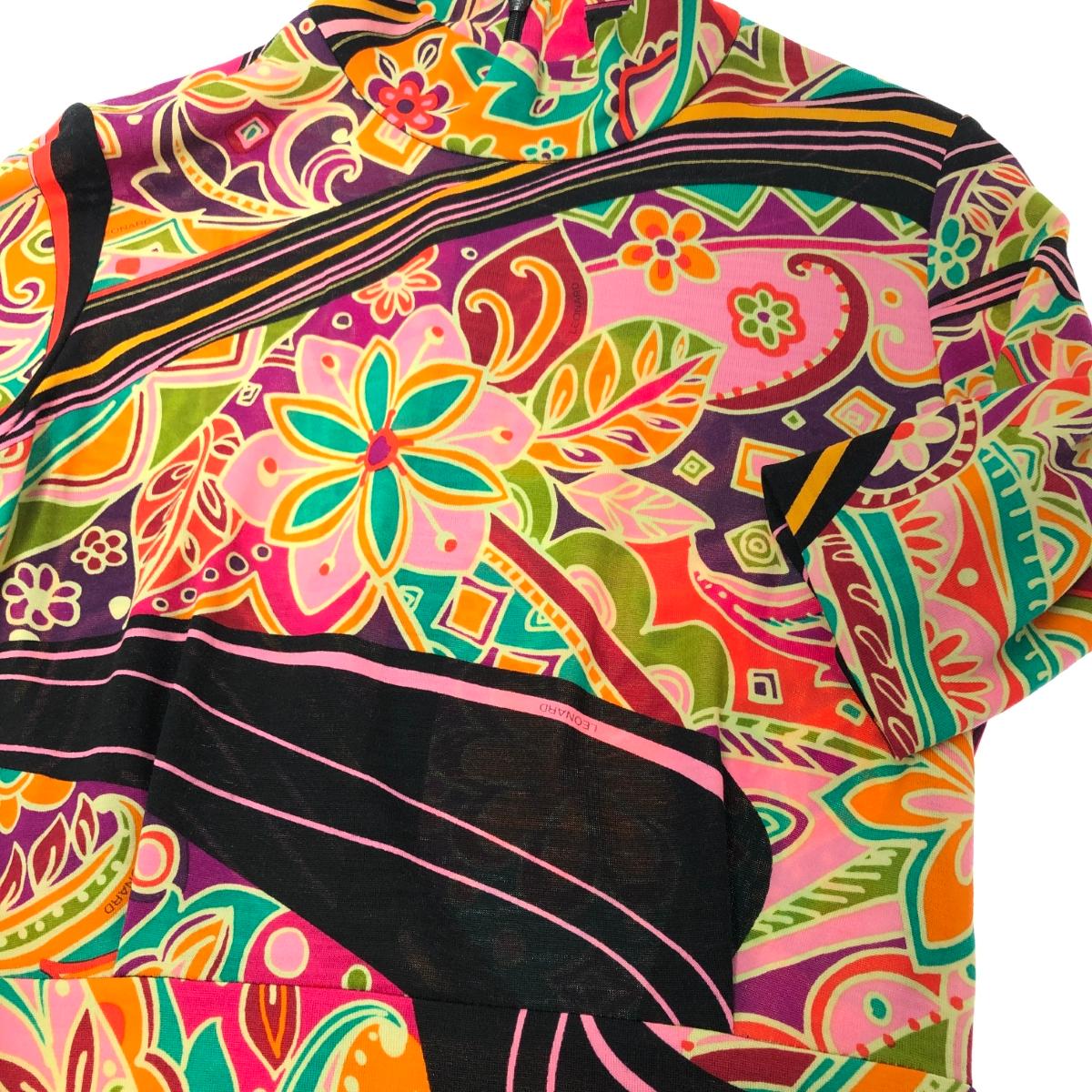 LEONARD レオナール 総柄 フラワーデザイン ハイネック 五分袖 ワンピース