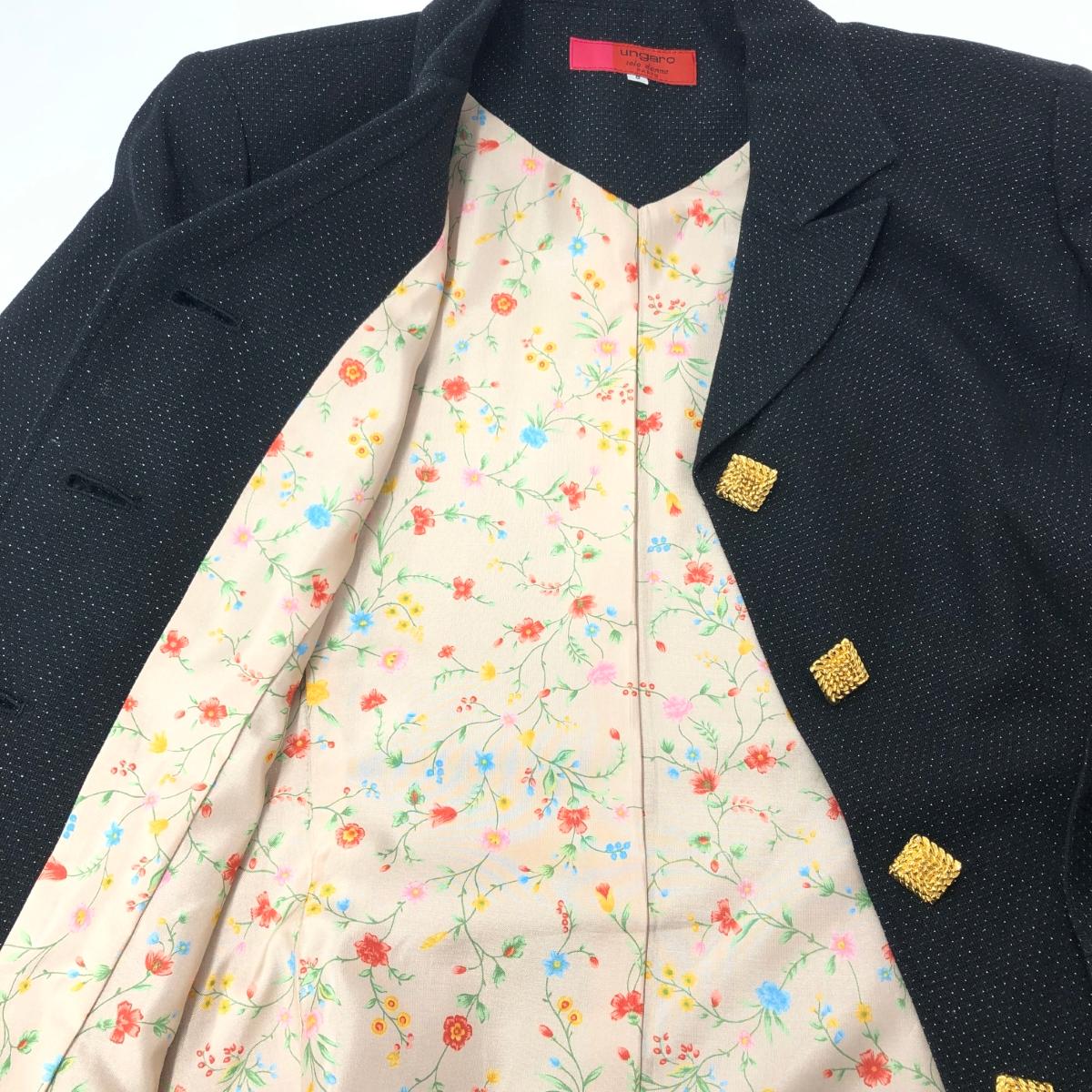 ungaro solo donna ウンガロ ラメ 裏地花柄 金ボタン テーラードジャケット