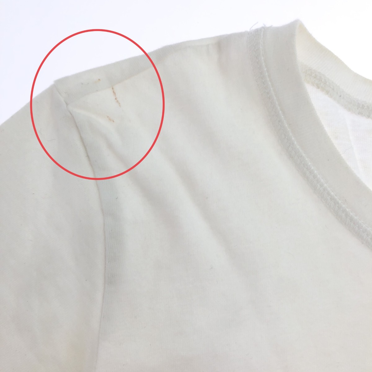使用感、首回り、前身ごろに所々汚れあり - ※スレ傷や汚れがある場合はその一部分のみ撮影を行っております。 画像に写っていない箇所にも同じようなスレ傷や汚れがある場合がございます。 |