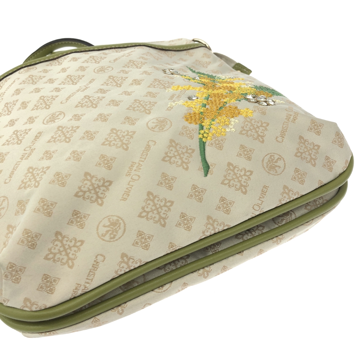 ショルダーバッグ 刺繍/ミモザ/ラインストーン/モノグラム/ナイロン |