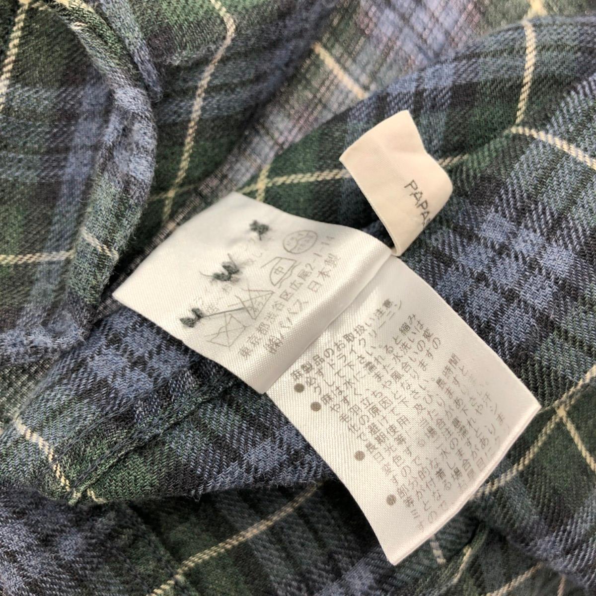 PAPAS パパス 半袖チェックシャツ メンズ