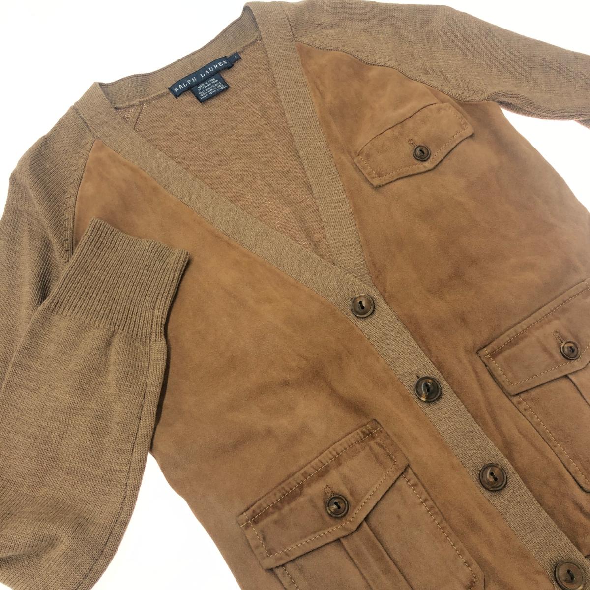 RALPH LAUREN ラルフローレン ニット×山羊革カーディガン レディース