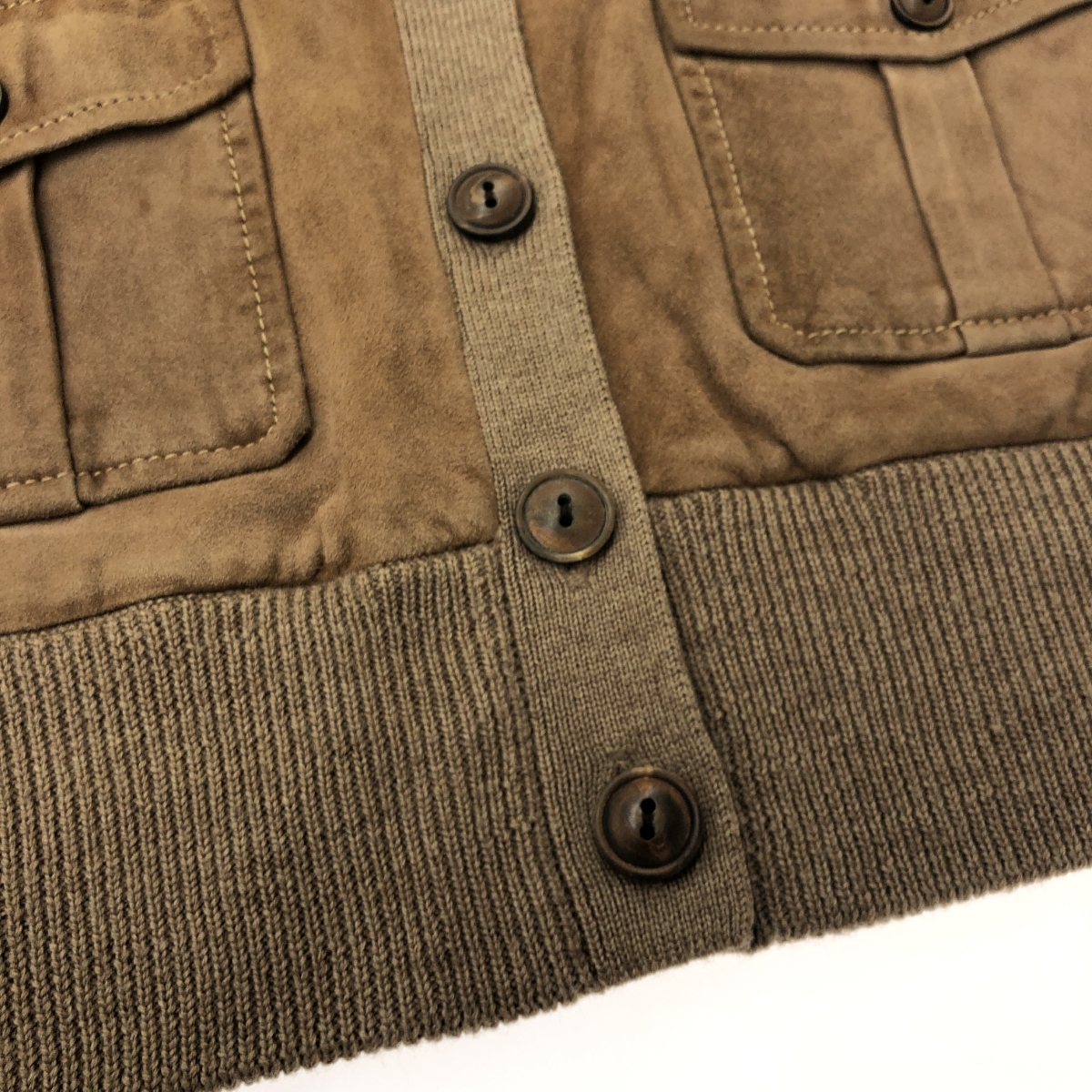 ニット×山羊革カーディガン ウール100% ※素材は画像の素材タグをご確認ください。 画像にない場合は素材タグが無く素材不明となります。 |