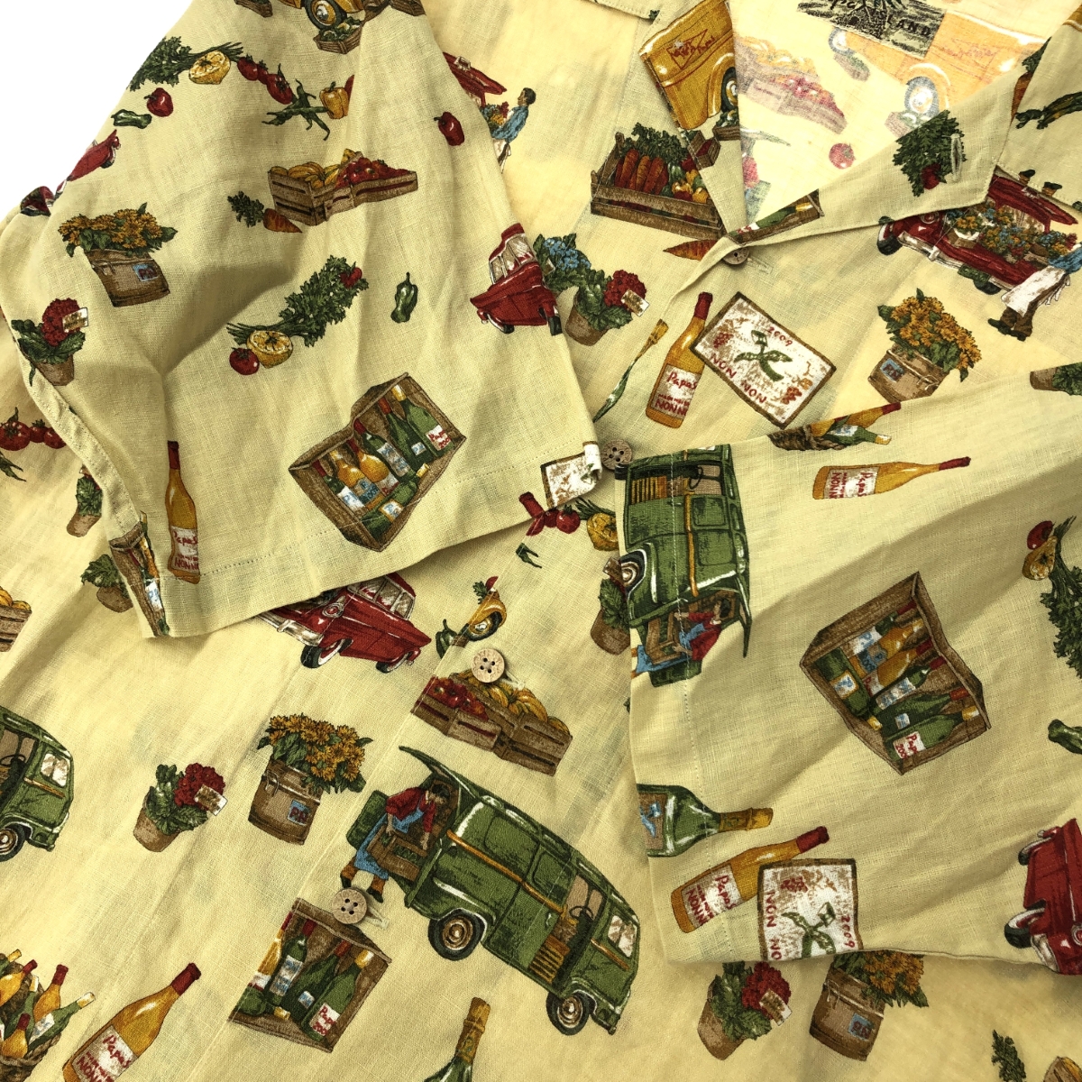 総柄アロハシャツ リネン ※素材は画像の素材タグをご確認ください。 画像にない場合は素材タグが無く素材不明となります。 |