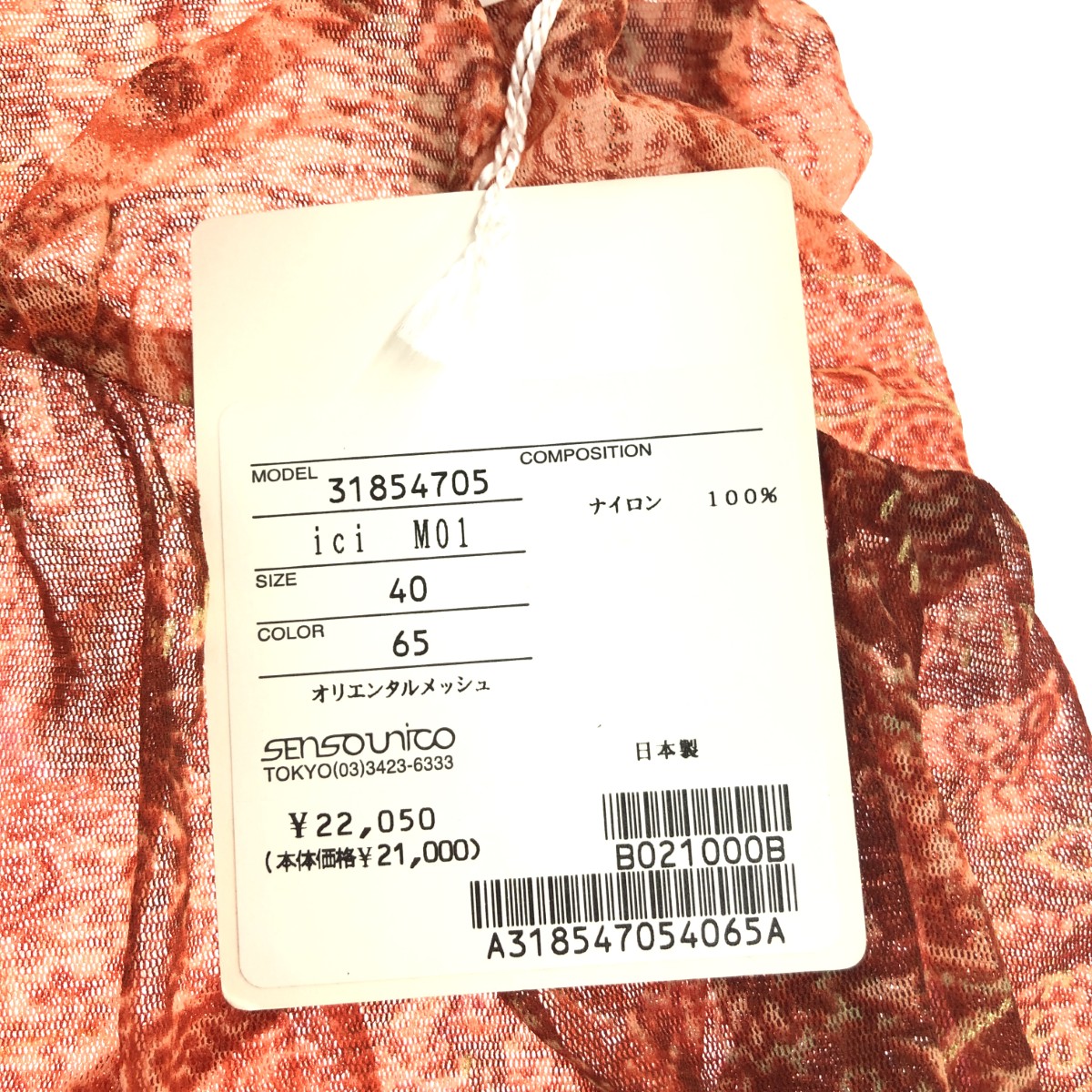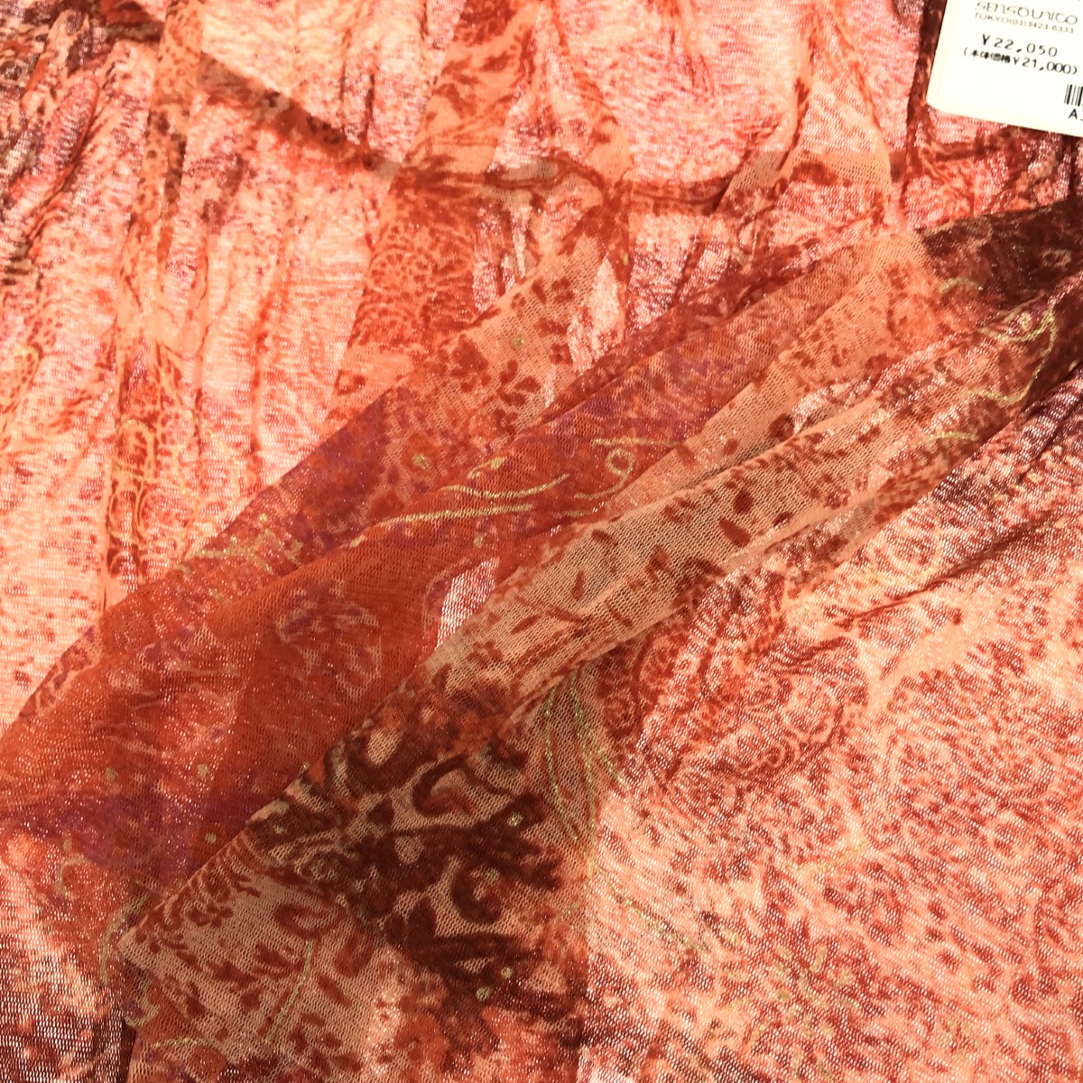 パワーネットカットソー ペイズリー柄/センソユニコ/シアー ※素材は画像の素材タグをご確認ください。 画像にない場合は素材タグが無く素材不明となります。 |