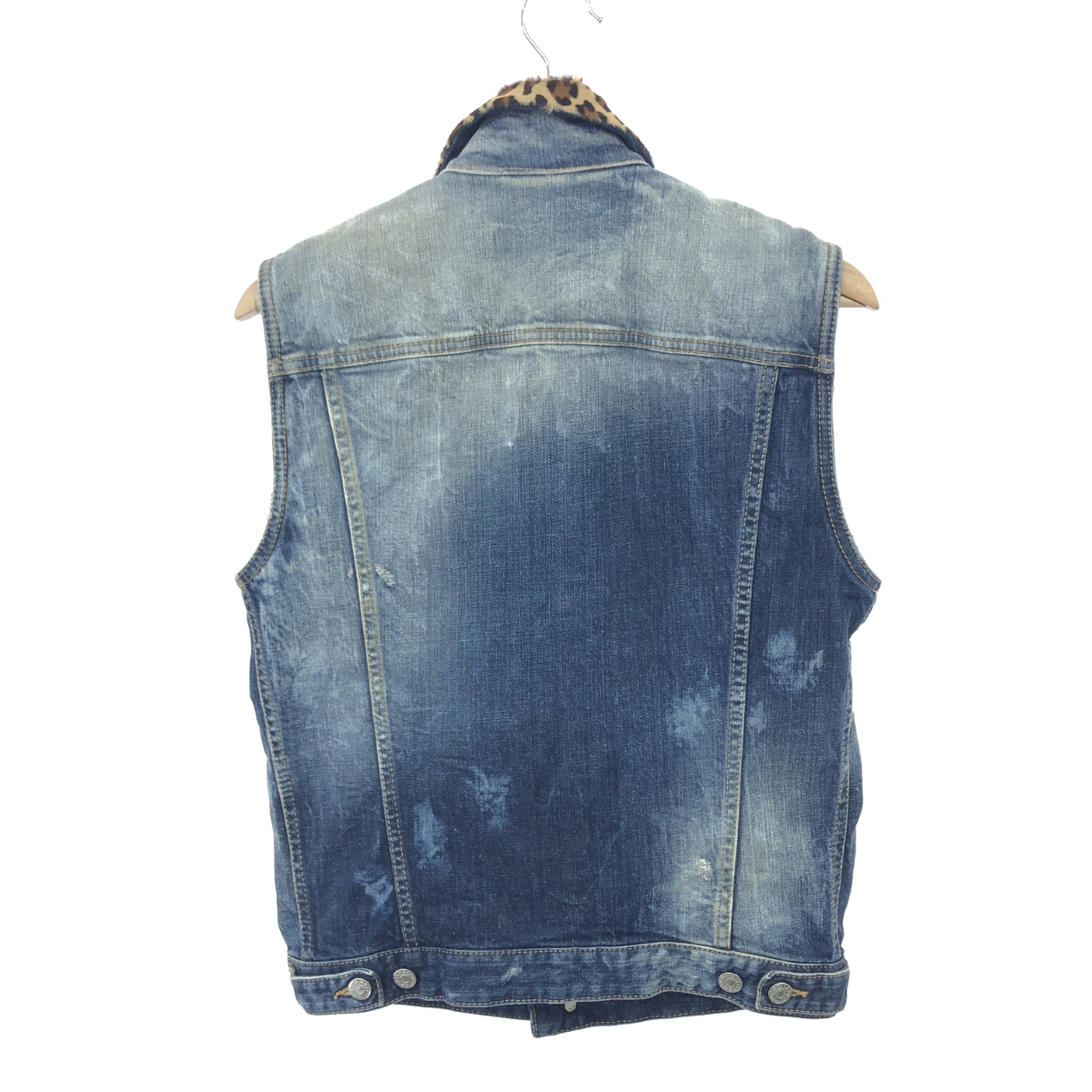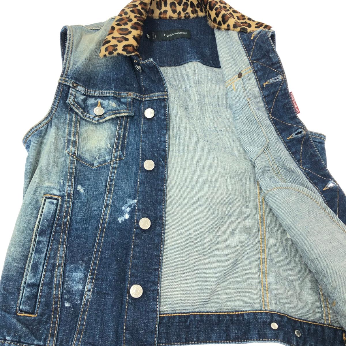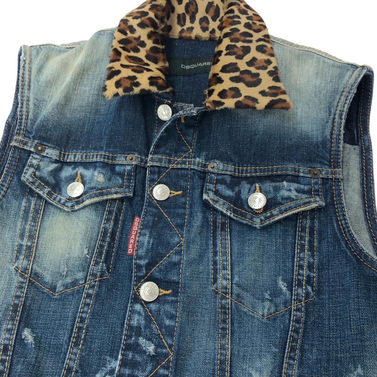 デニムベスト ダメージ加工/レオパードカラー ※素材は画像の素材タグをご確認ください。 画像にない場合は素材タグが無く素材不明となります。 |