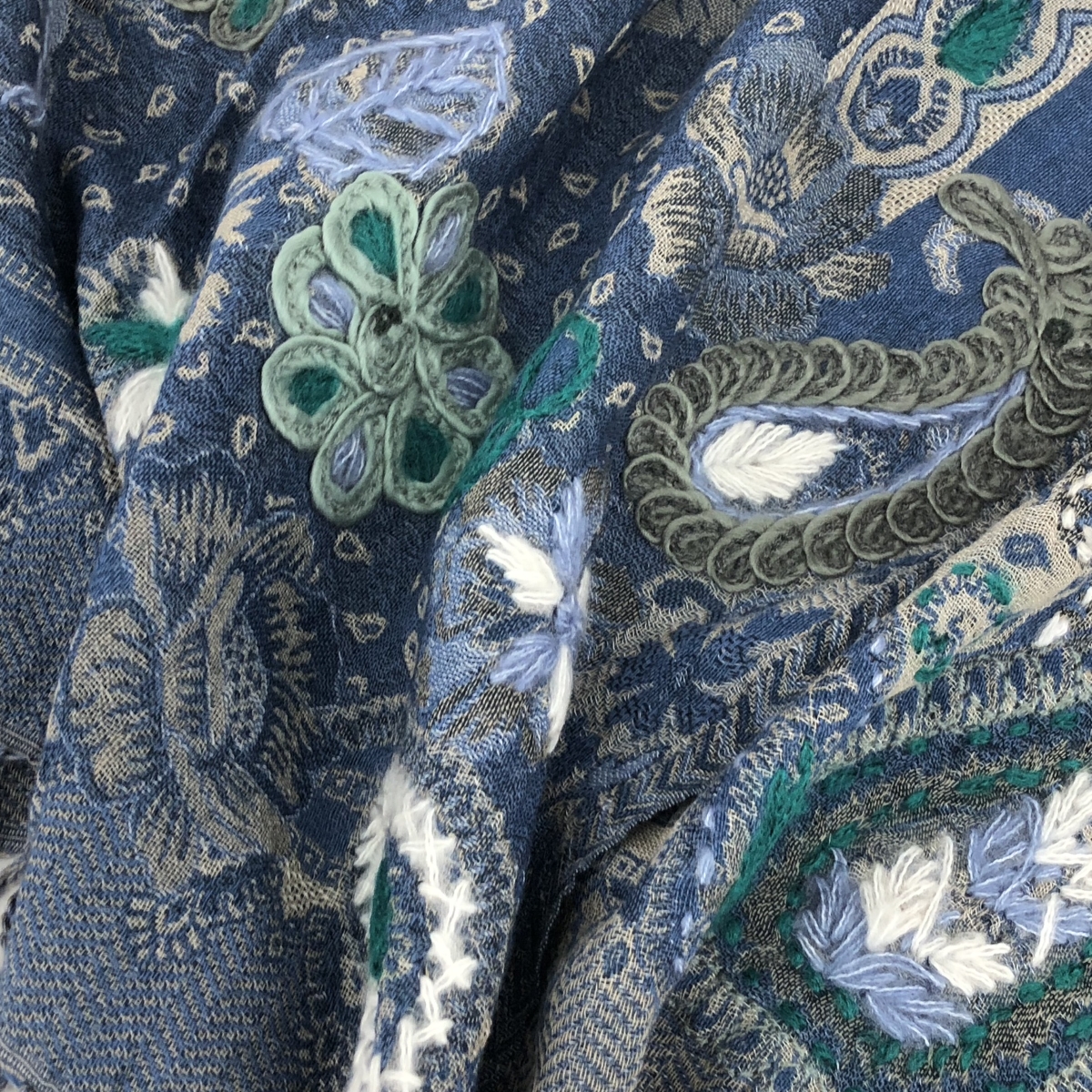 ストール フラワーモチーフ/ウール×コットン |