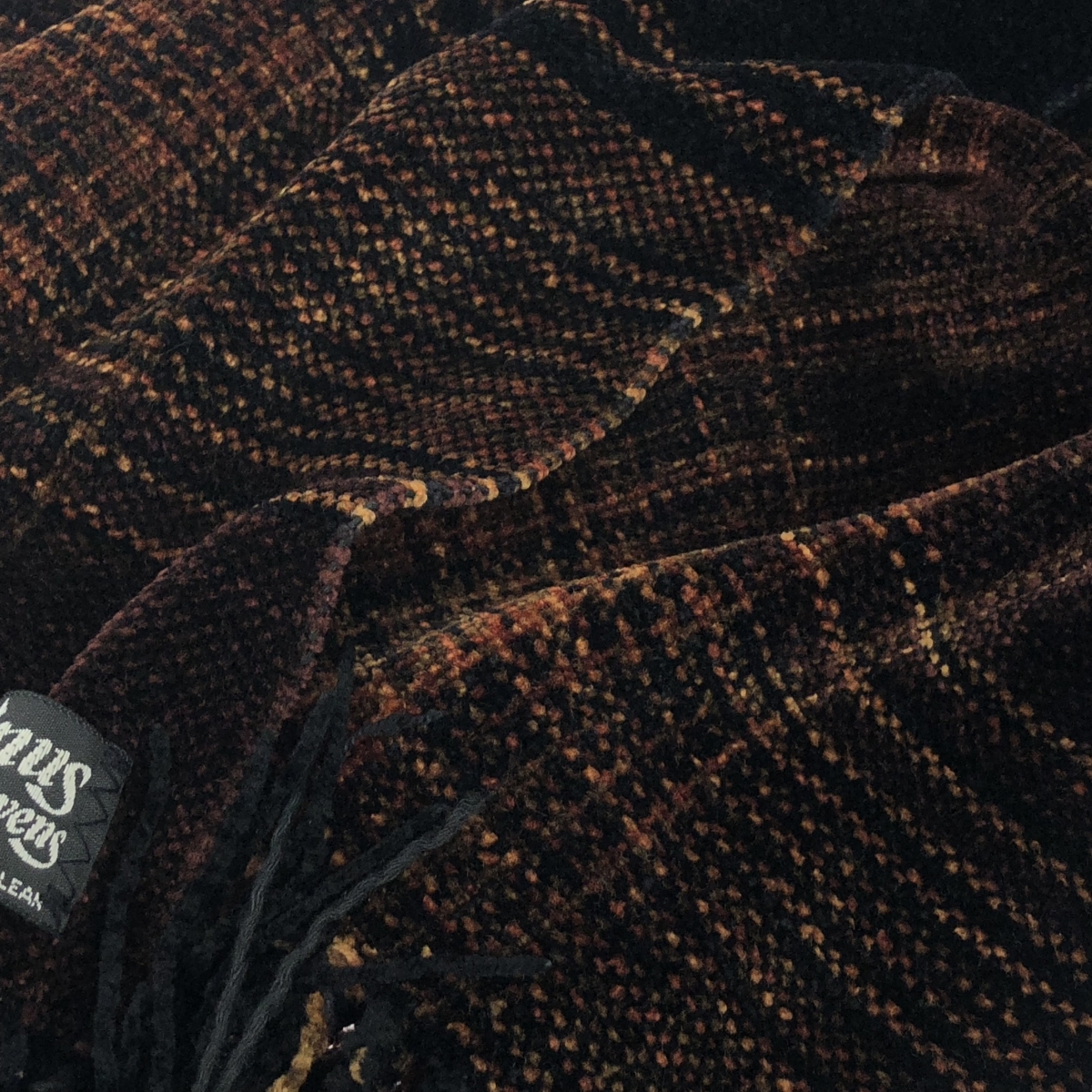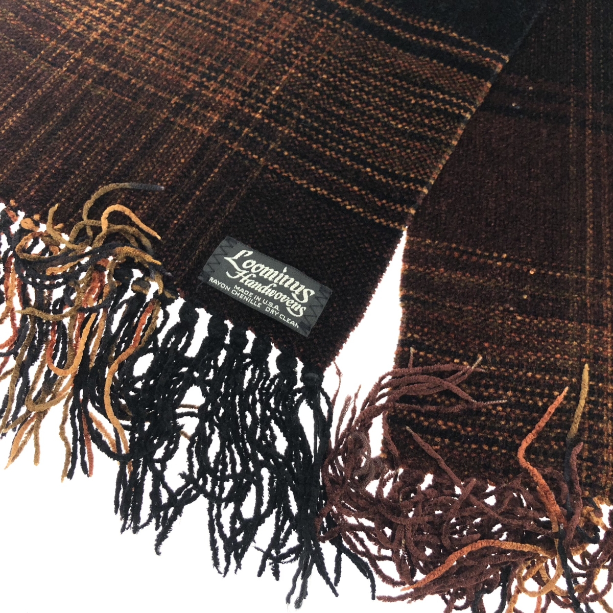 フリンジマフラー チェック柄/USA製/レーヨンシェニール織 |