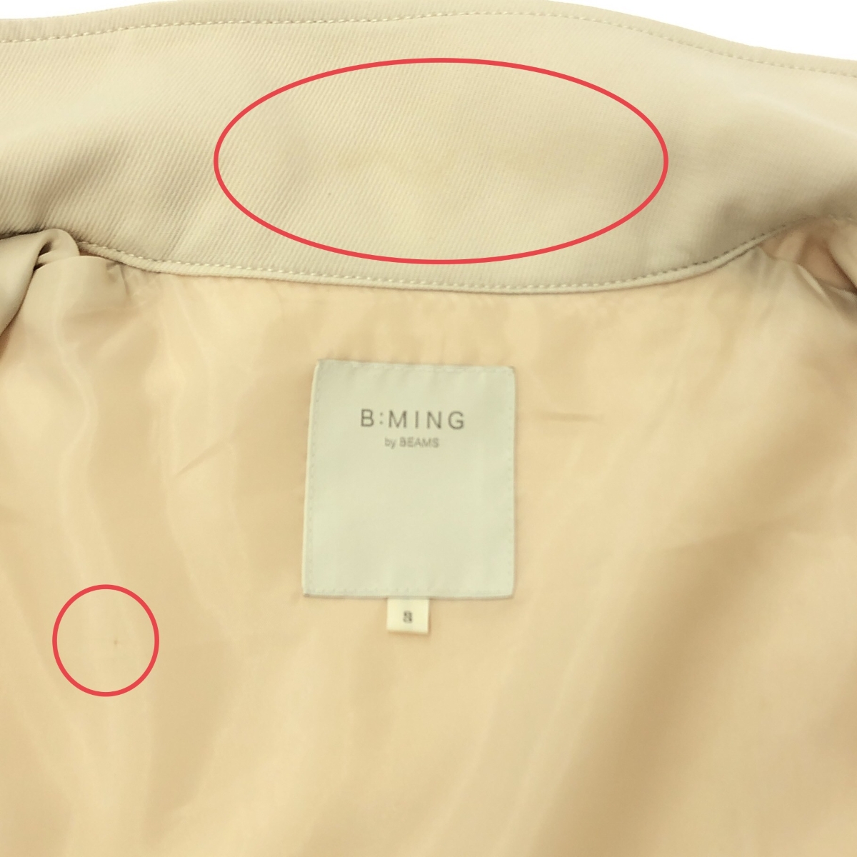 襟付近に若干の汚れあり - ※スレ傷や汚れがある場合はその一部分のみ撮影を行っております。 画像に写っていない箇所にも同じようなスレ傷や汚れがある場合がございます。 |