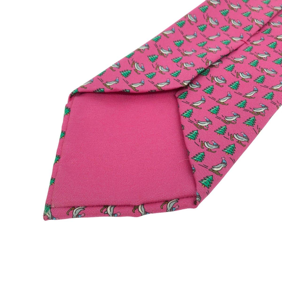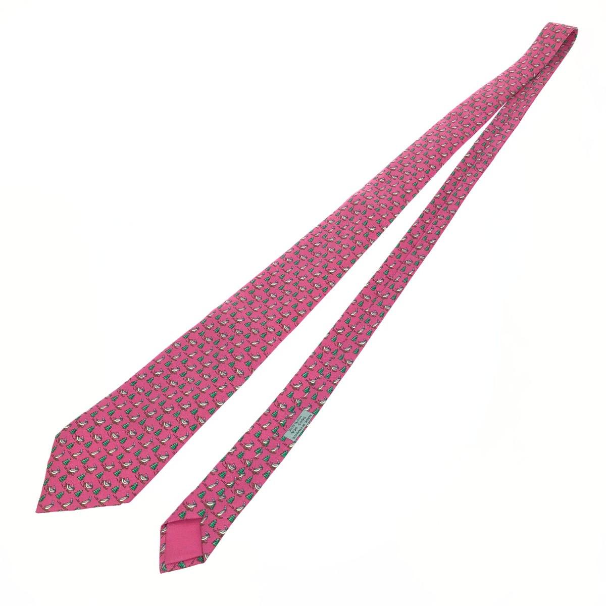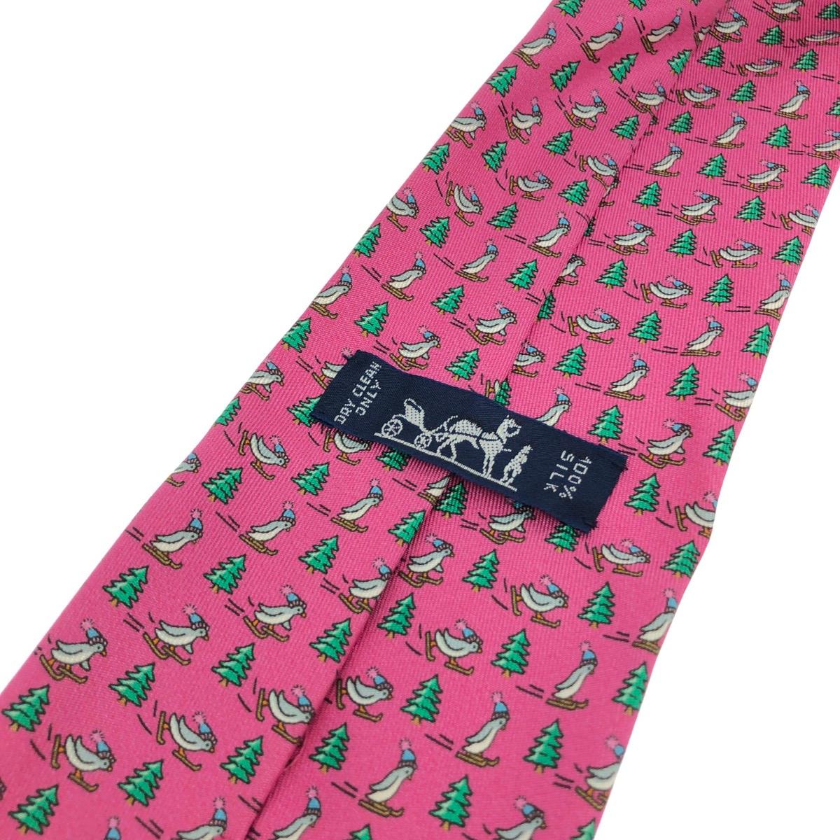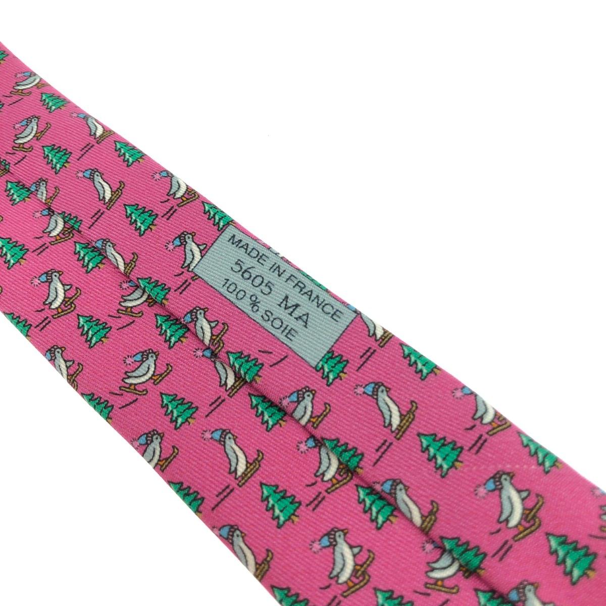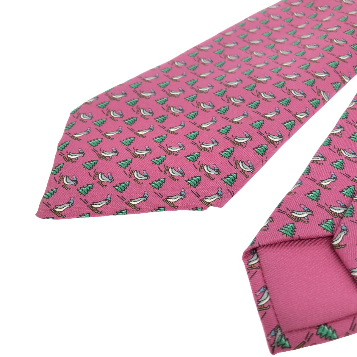 ネクタイ アニマル柄/ペンギン/シルク/フューシャ シルク100% |