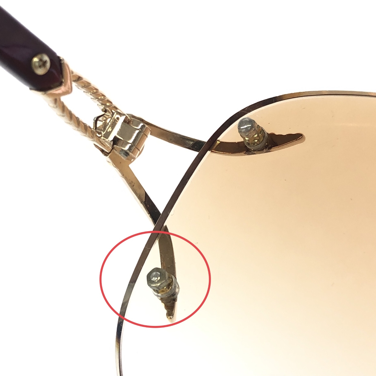 【フレーム】スレ・くすみ・ビス欠け- 【レンズ】度あり(度数不明)/ややスレ ※スレ傷や汚れがある場合はその一部分のみ撮影を行っております。 画像に写っていない箇所にも同じようなスレ傷や汚れがある場合がございます。 |