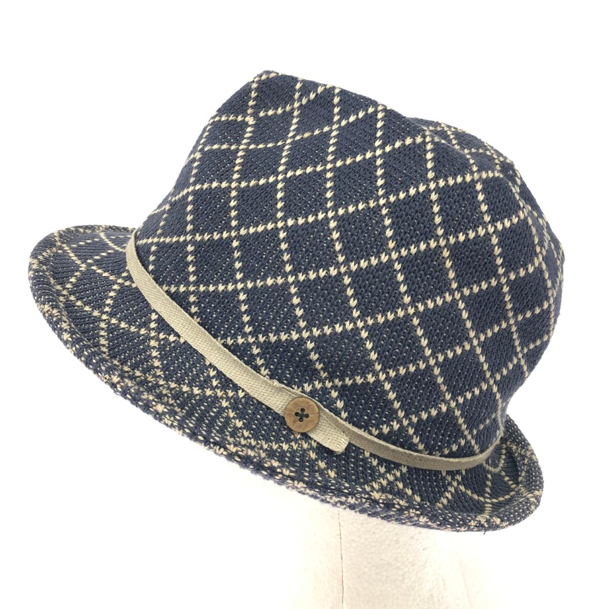 中折れハット 格子柄/コットン×アクリル |