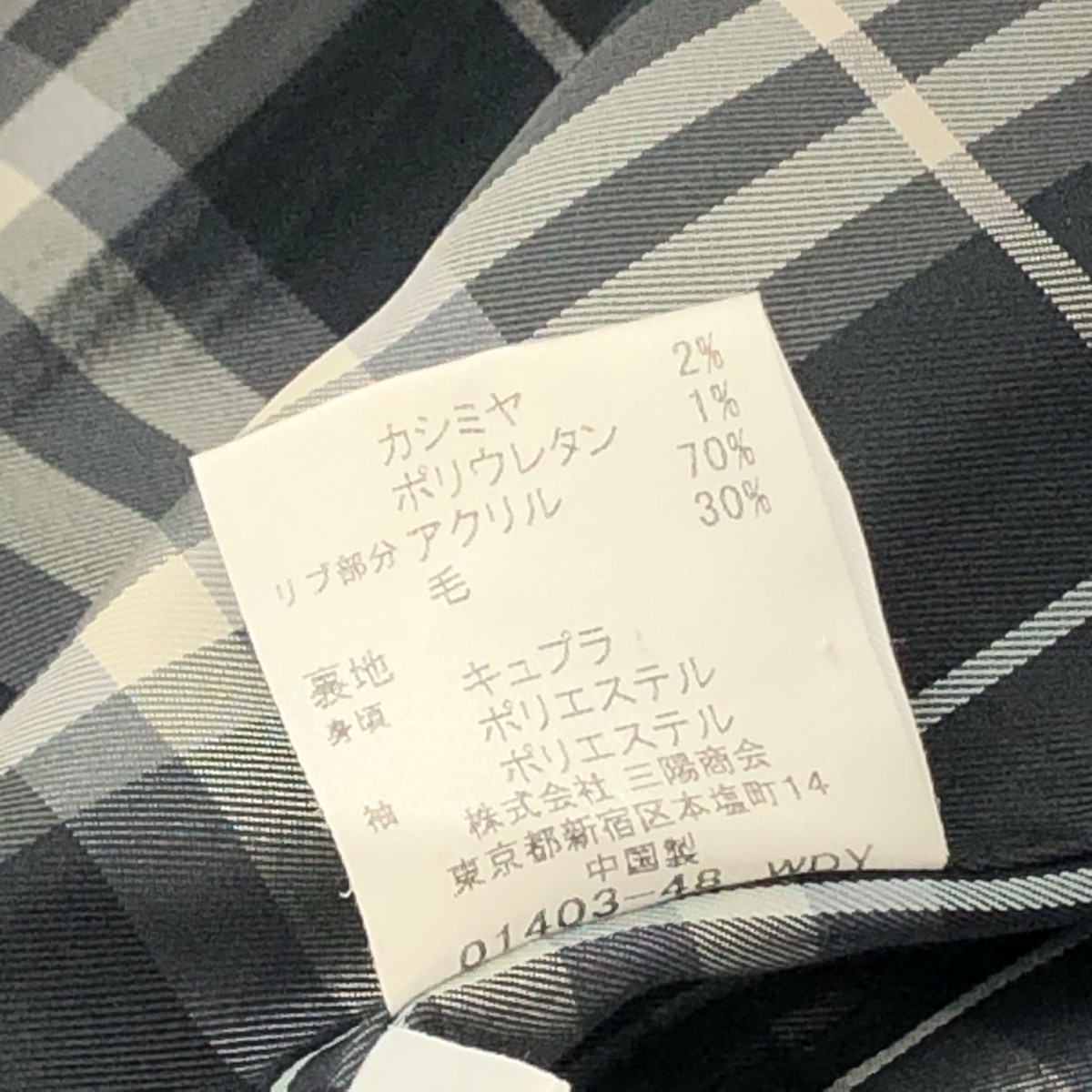 リブニットジャケット 裏地チェック ※素材は画像の素材タグをご確認ください。 画像にない場合は素材タグが無く素材不明となります。 |