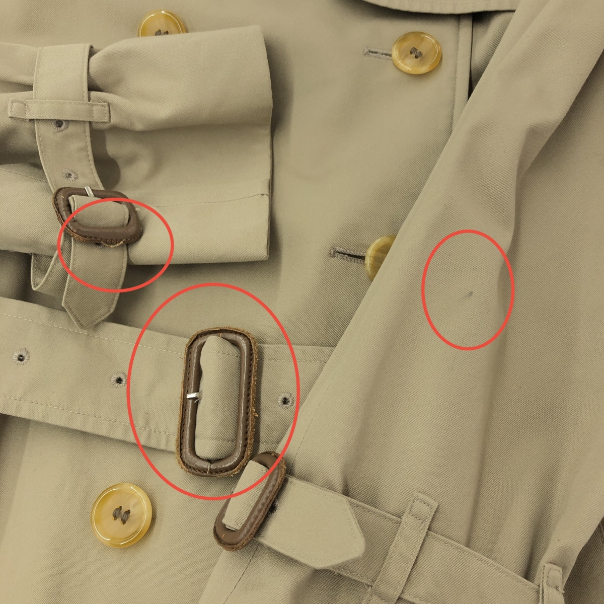 全体的に所々汚れあり 左袖やベルト革部分にダメージあり サイズ表記無し - ※スレ傷や汚れがある場合はその一部分のみ撮影を行っております。 画像に写っていない箇所にも同じようなスレ傷や汚れがある場合がございます。 |