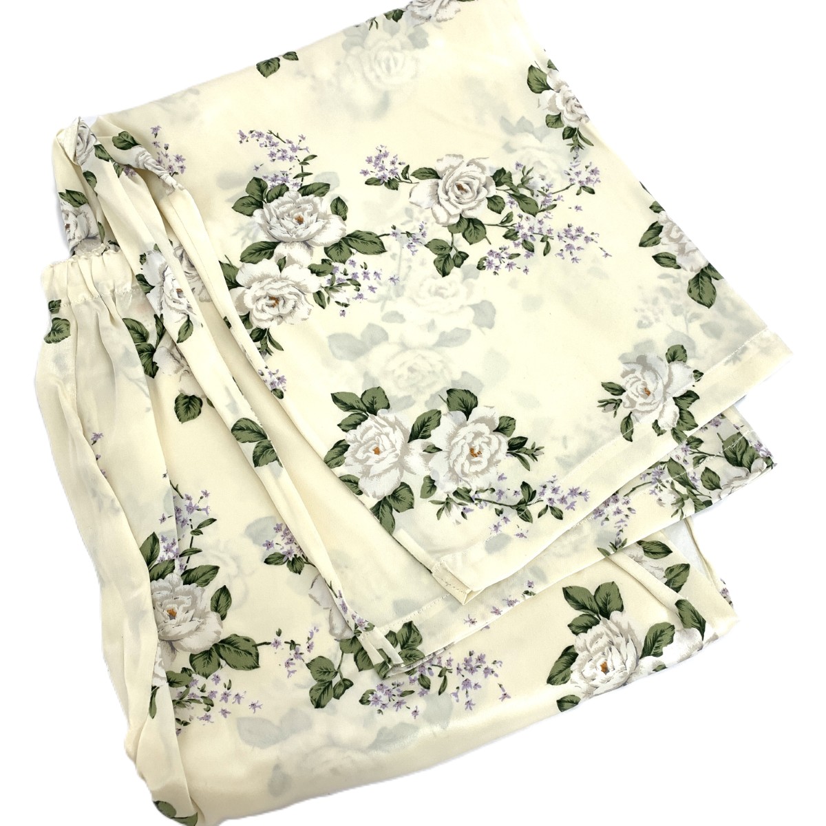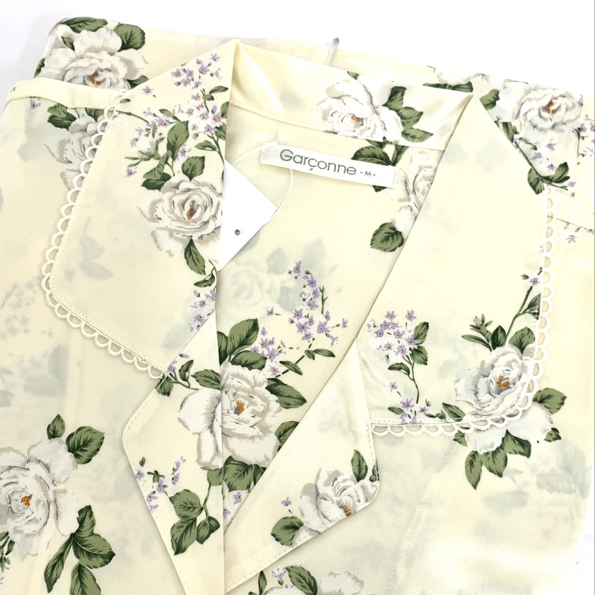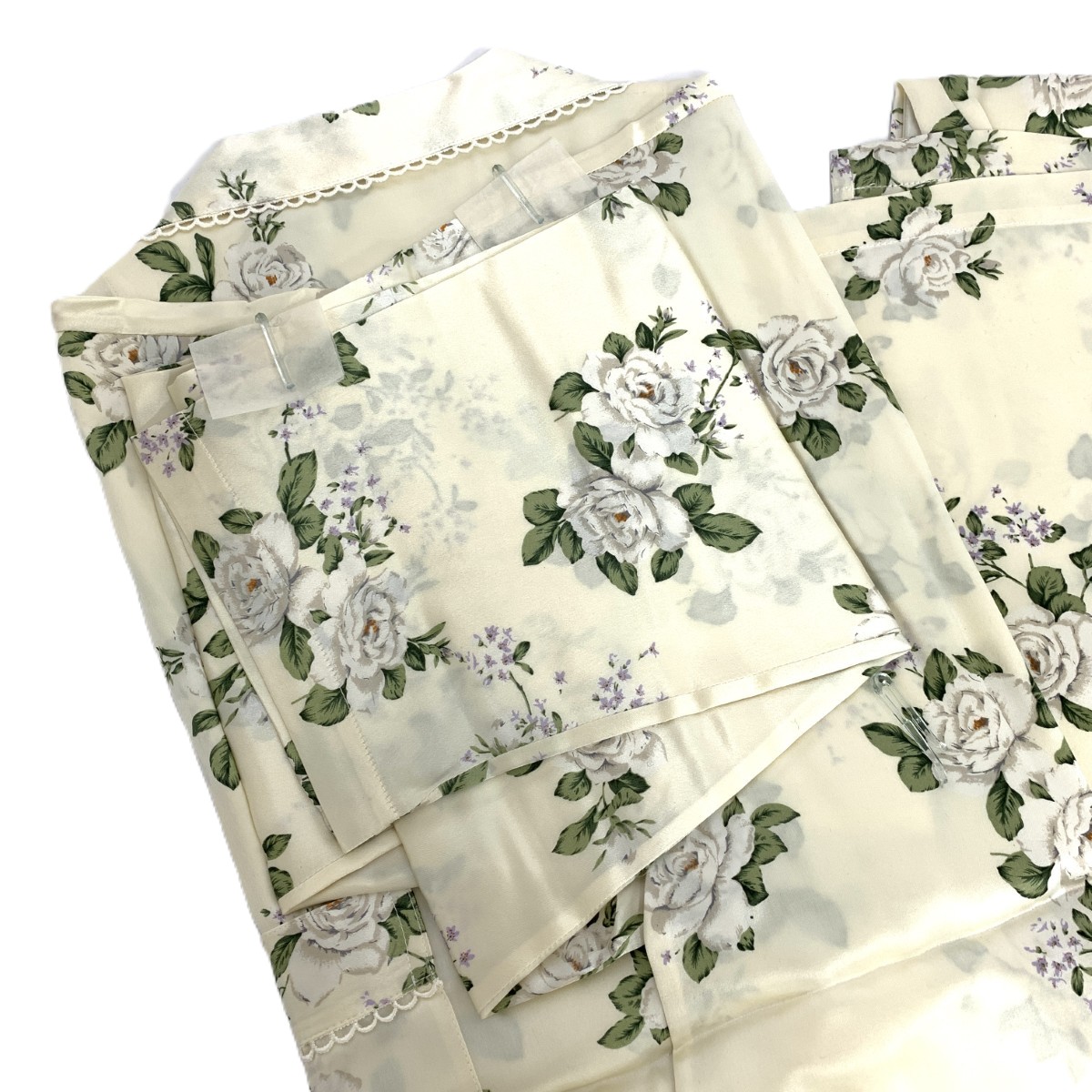 パジャマ 上下/長袖長ズボン/花柄/レース/シルク/アイボリー |