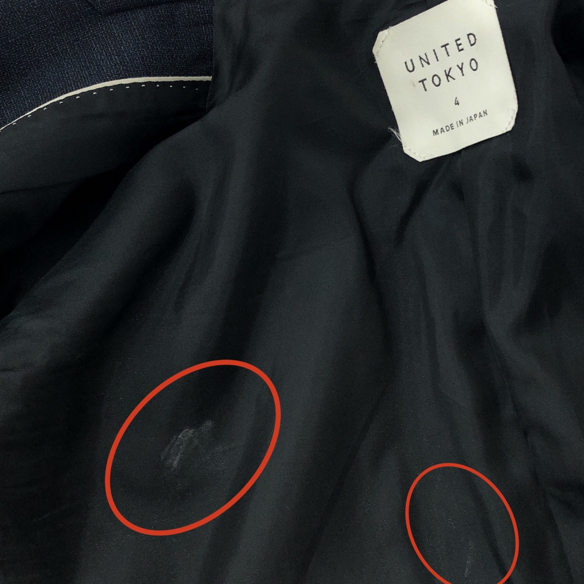 裏地汚れ- ※スレ傷や汚れがある場合はその一部分のみ撮影を行っております。 画像に写っていない箇所にも同じようなスレ傷や汚れがある場合がございます。 |