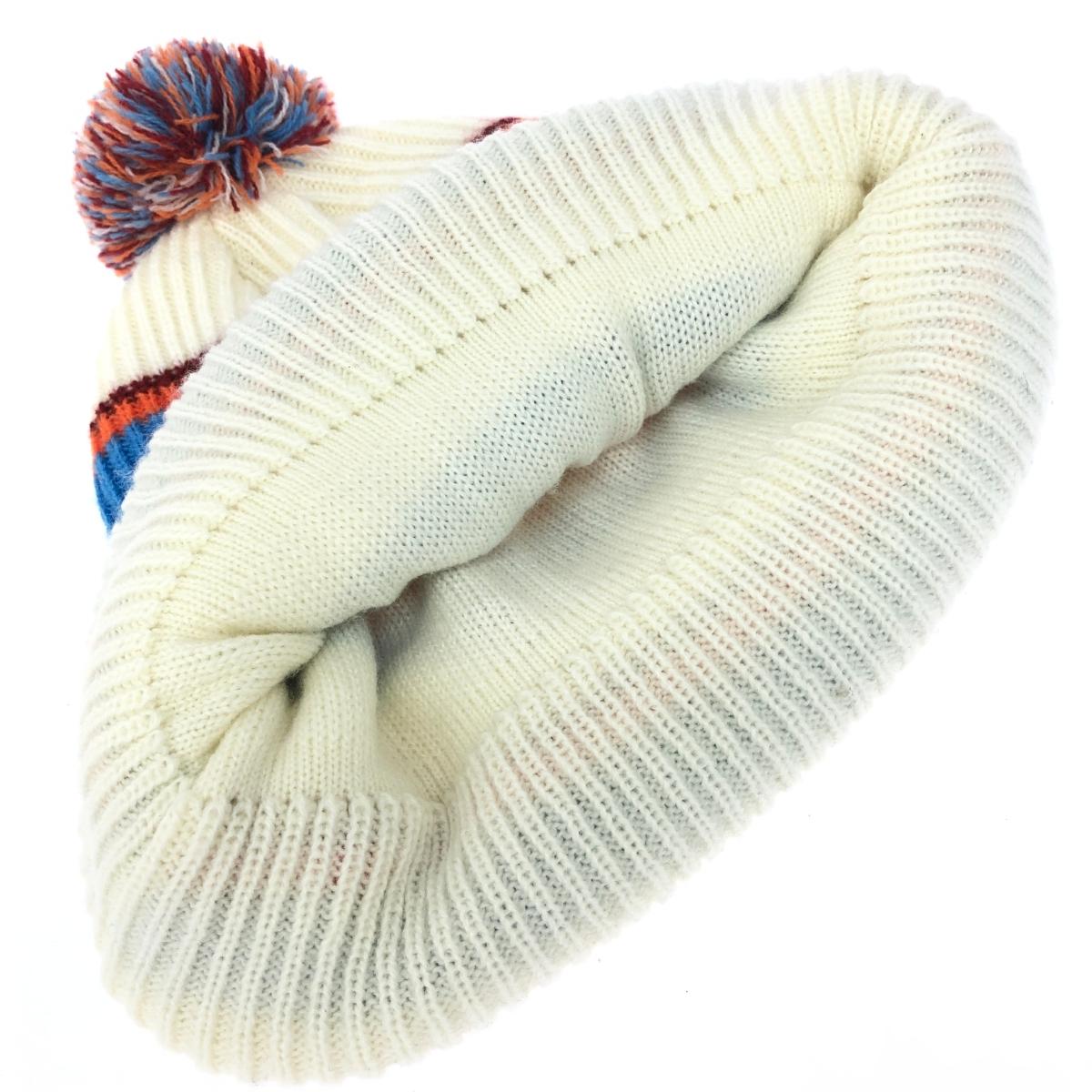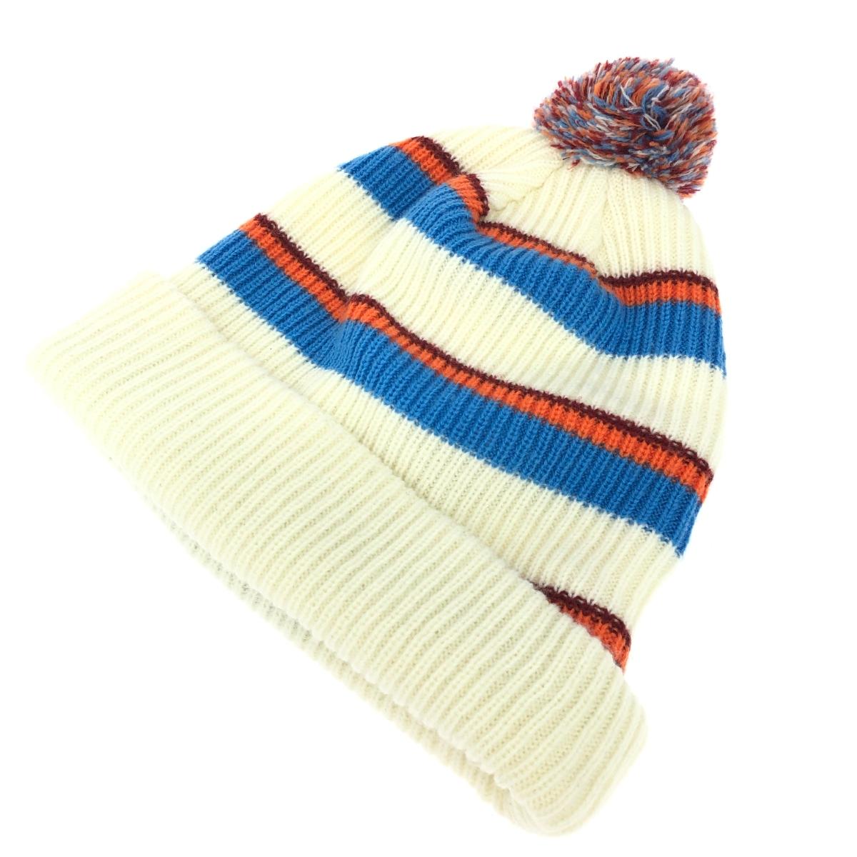 ニットキャップ ロゴ刺繍/ボーダー/ボンボン/アクリル |