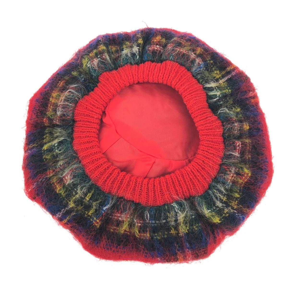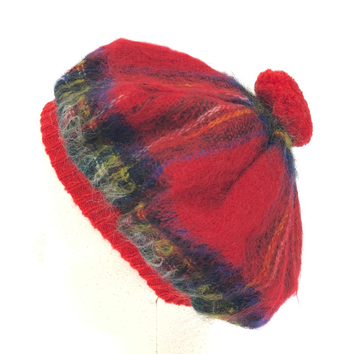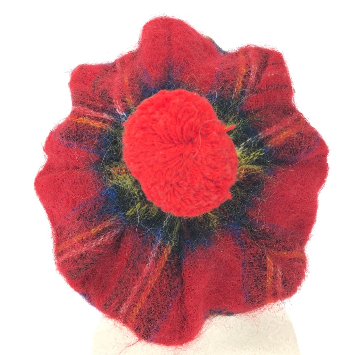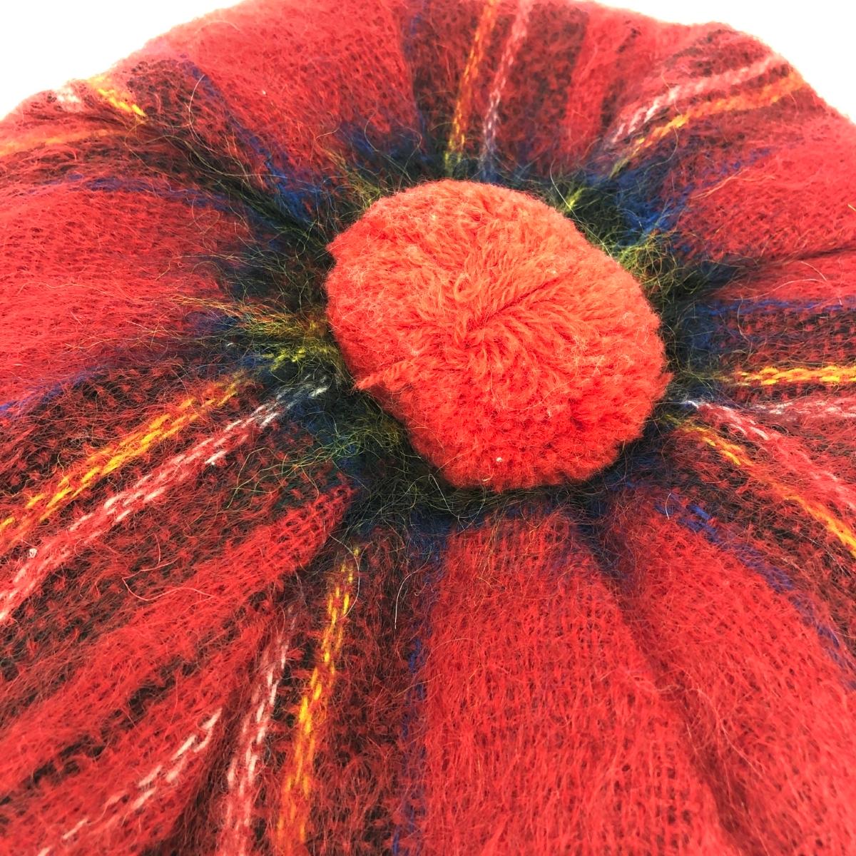 ベレー帽 ヴィンテージ品 タータンチェック/ボンボン/スコットランド製/ウール×モヘヤ |