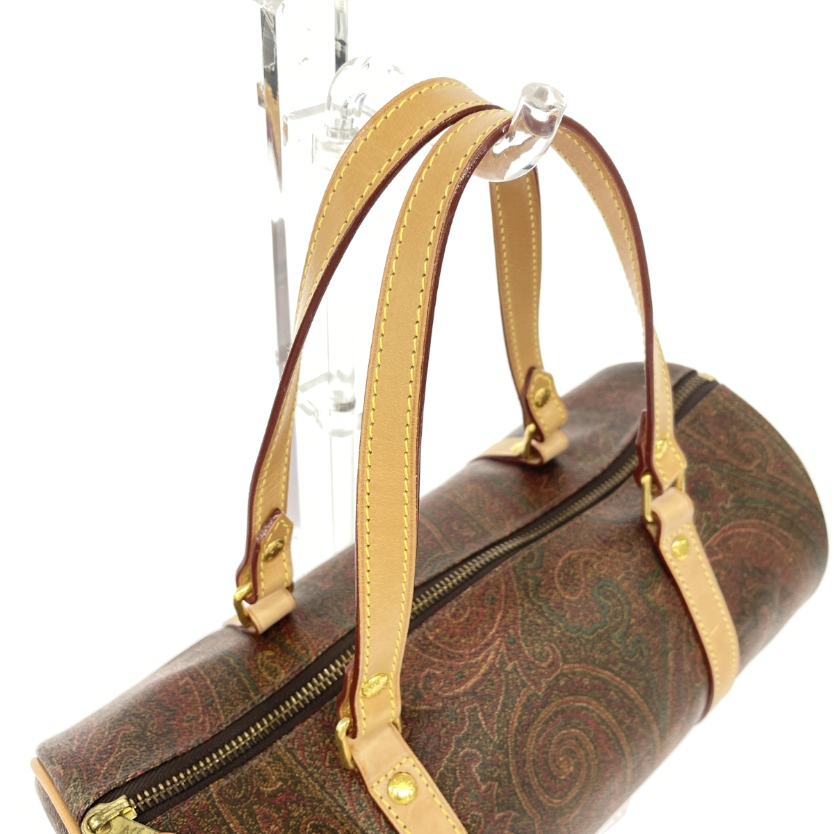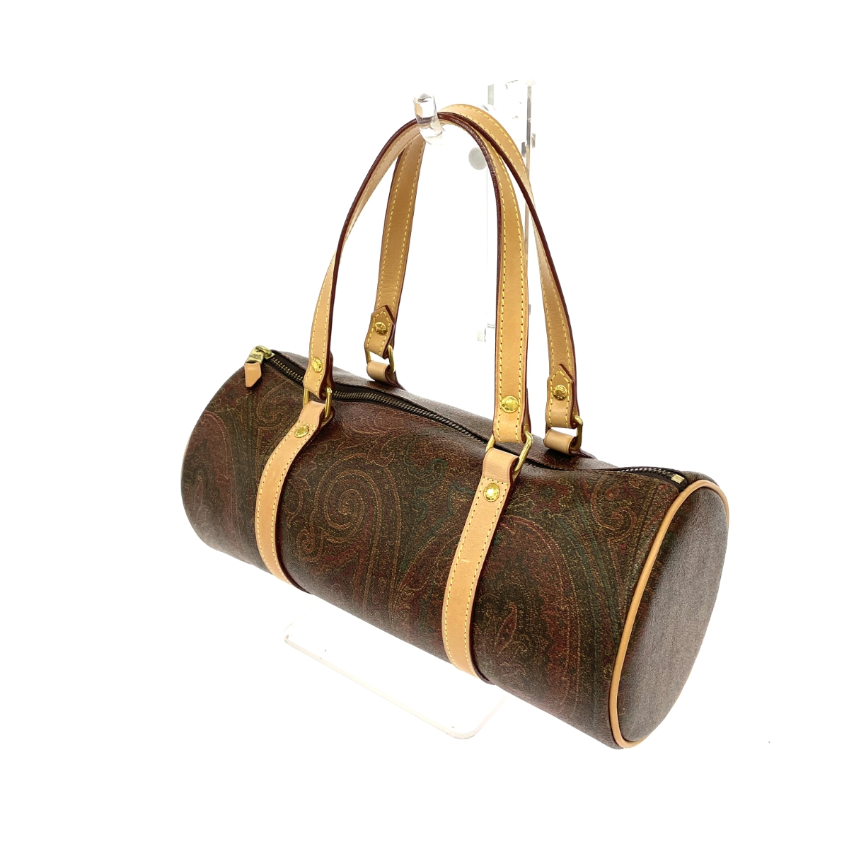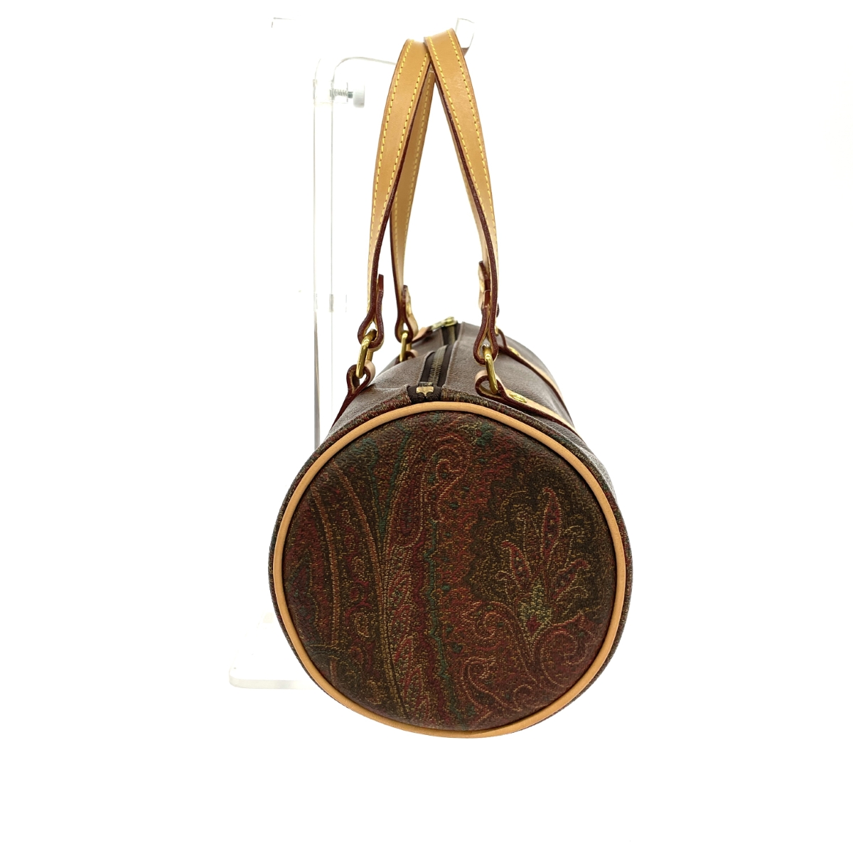 ボストンバッグ ドラム型 円筒 ペイズリー PVC ブラウン 箱付 |