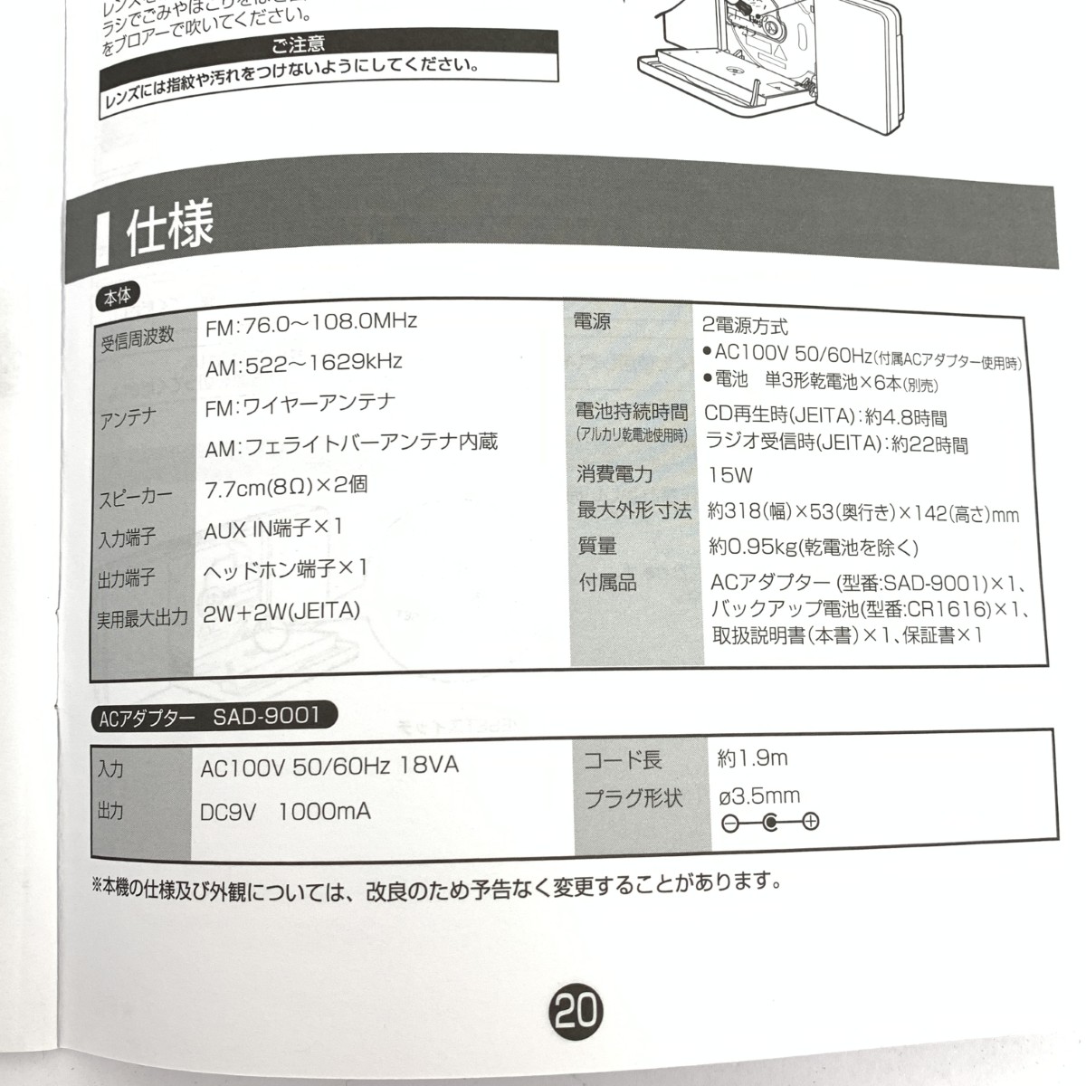 ミニコンポ/ステレオCD SAD-4338/W |
