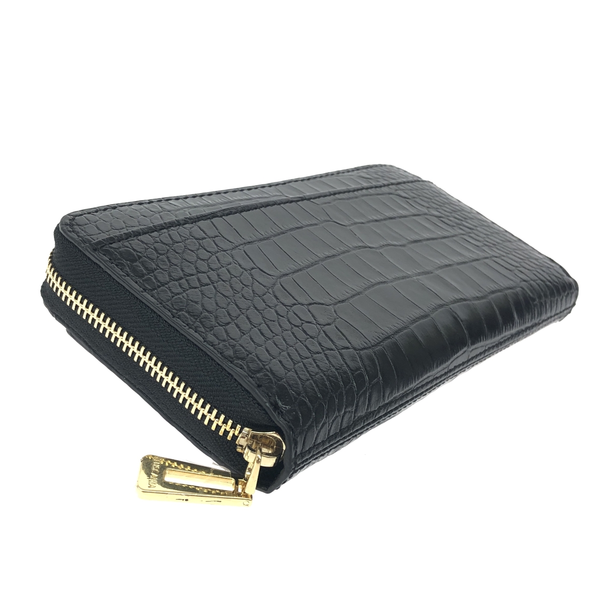 ラウンドファスナー長財布 クロコ型押し/レザー/ブラック/箱付 |