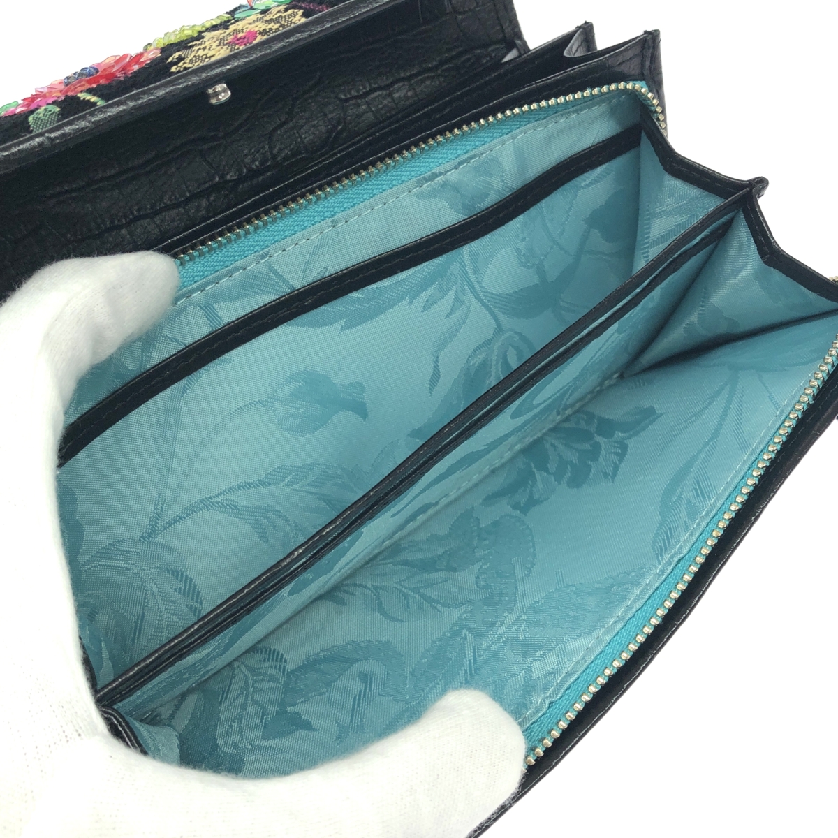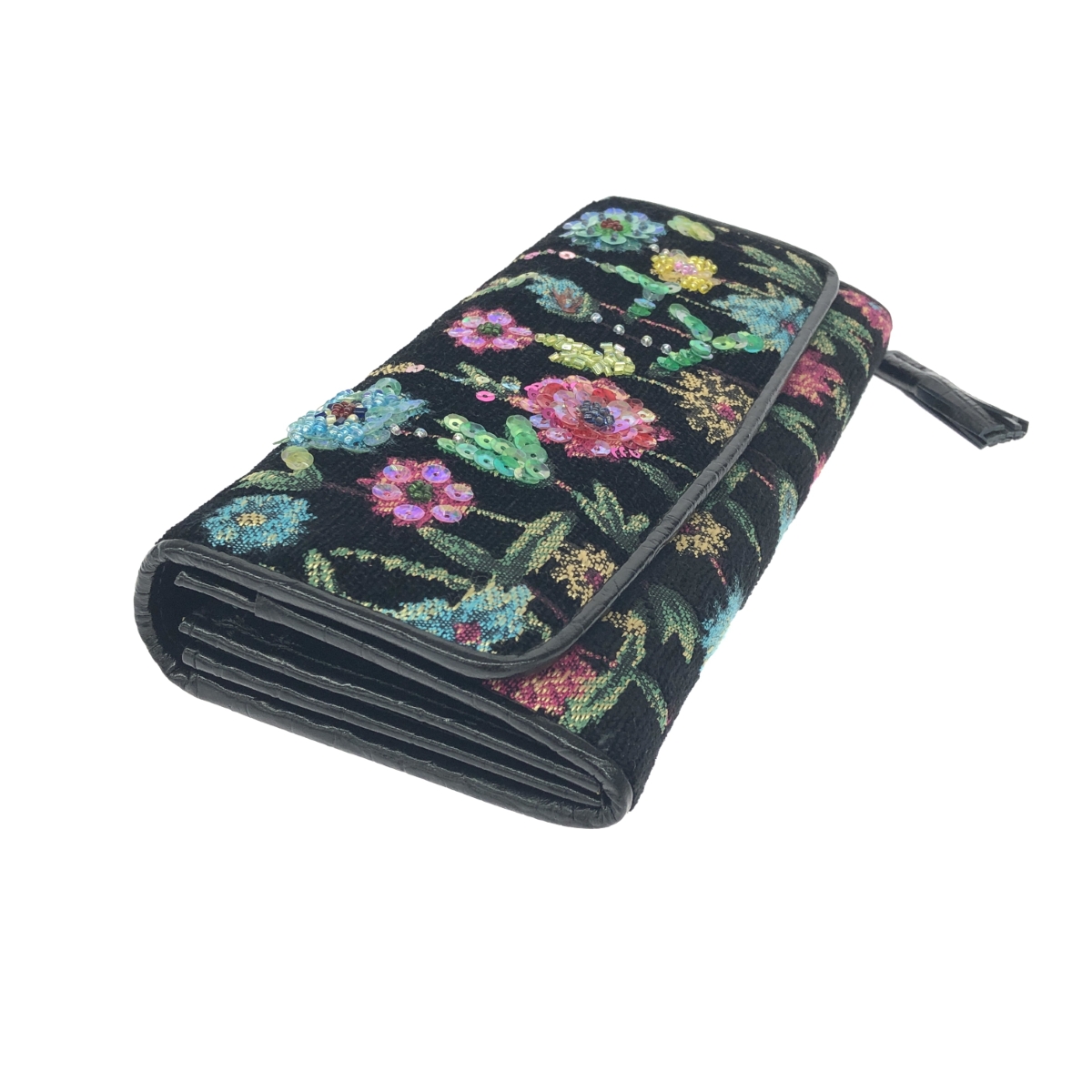 二つ折り長財布 フラワー/ビーズ/パイル地/箱付 |