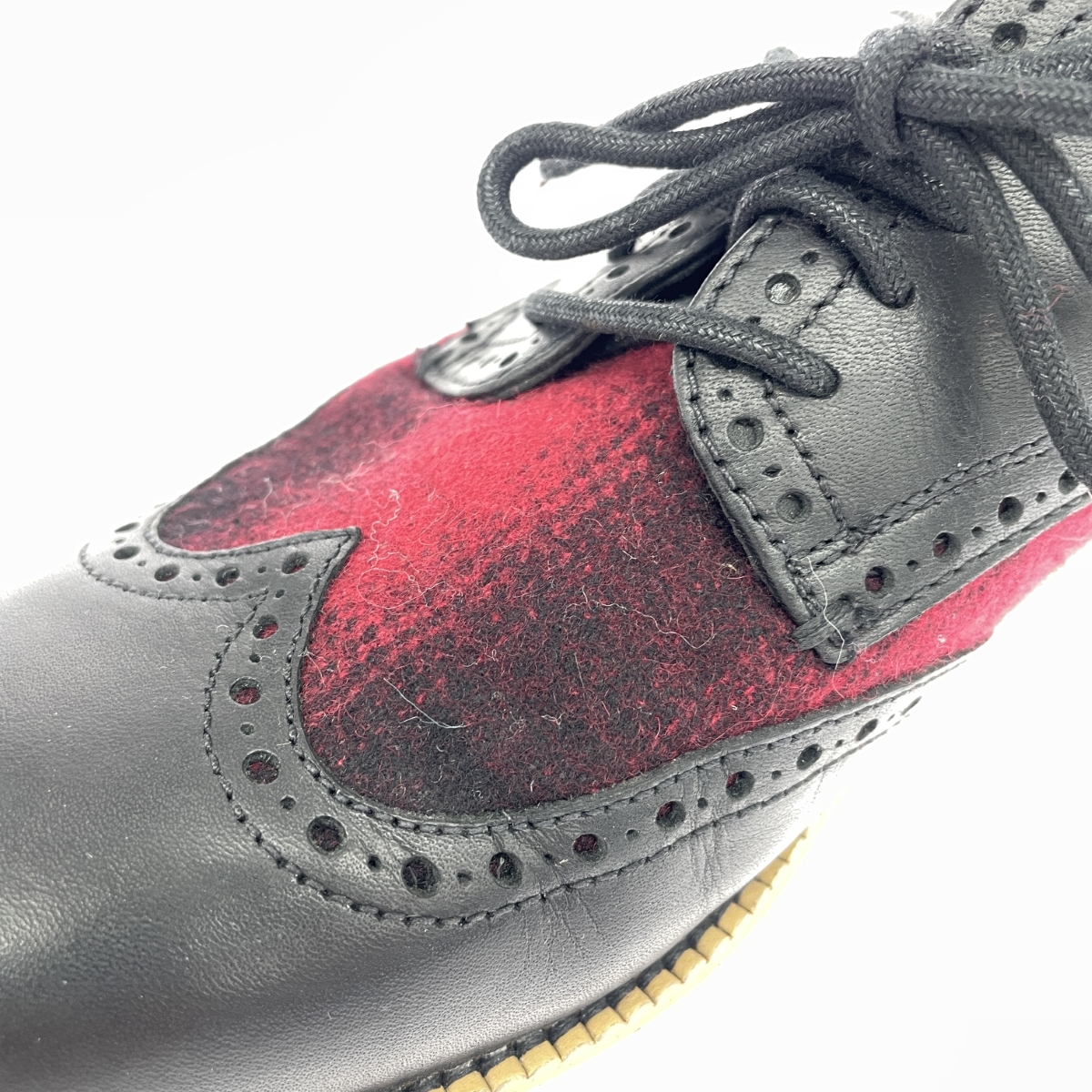 ウイングチップシューズ チェック柄ファブリック×レザー切替 |