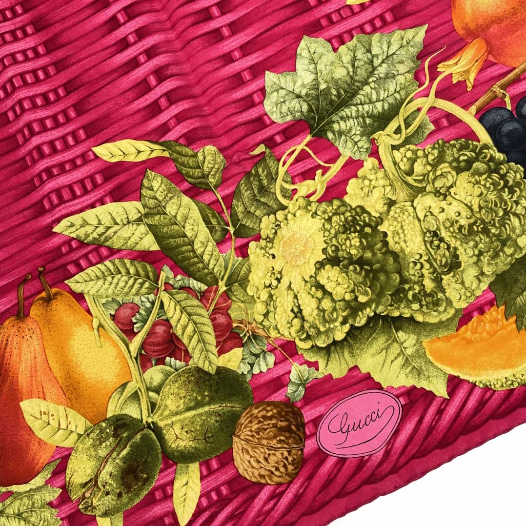 スカーフ フルーツ/バスケット/ シルク100% |