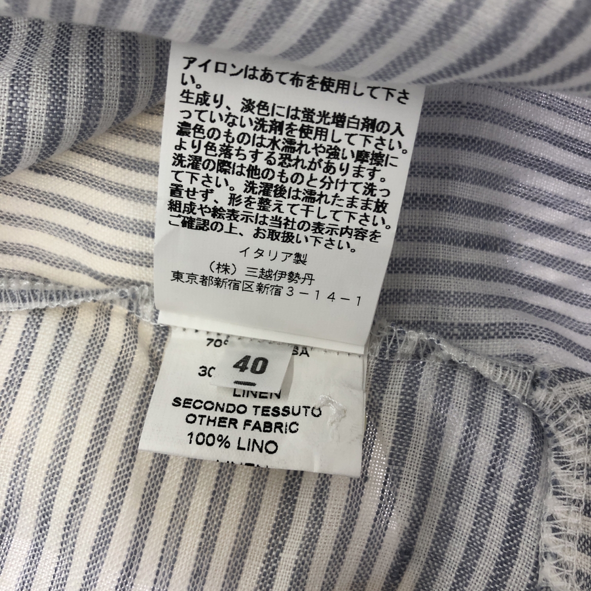 YC WhYCI Milano/コンビデザインリネンシャツ センソユニコ ※素材は画像の素材タグをご確認ください。 画像にない場合は素材タグが無く素材不明となります。 |