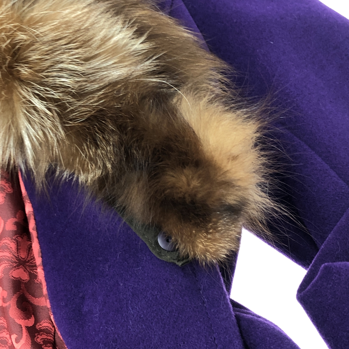 ファー付きロングコート ブルーフォックス/裏地総柄 アンゴラウール ※素材は画像の素材タグをご確認ください。 画像にない場合は素材タグが無く素材不明となります。 |