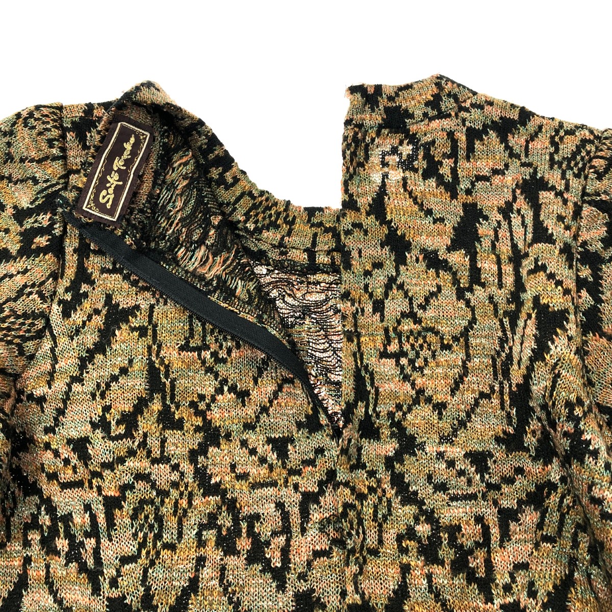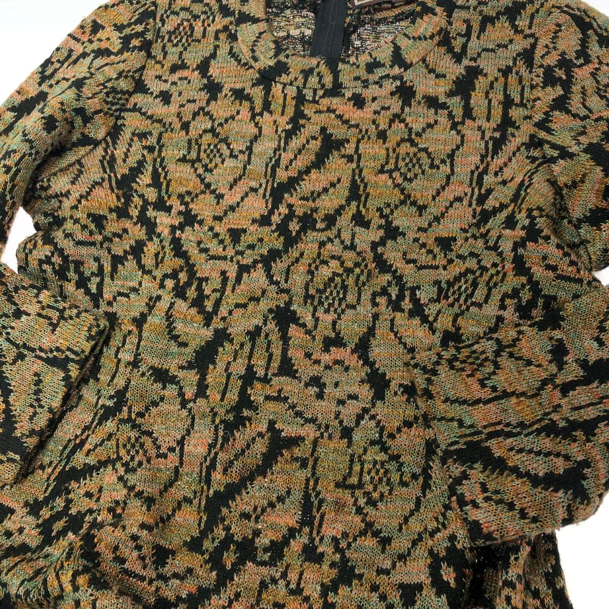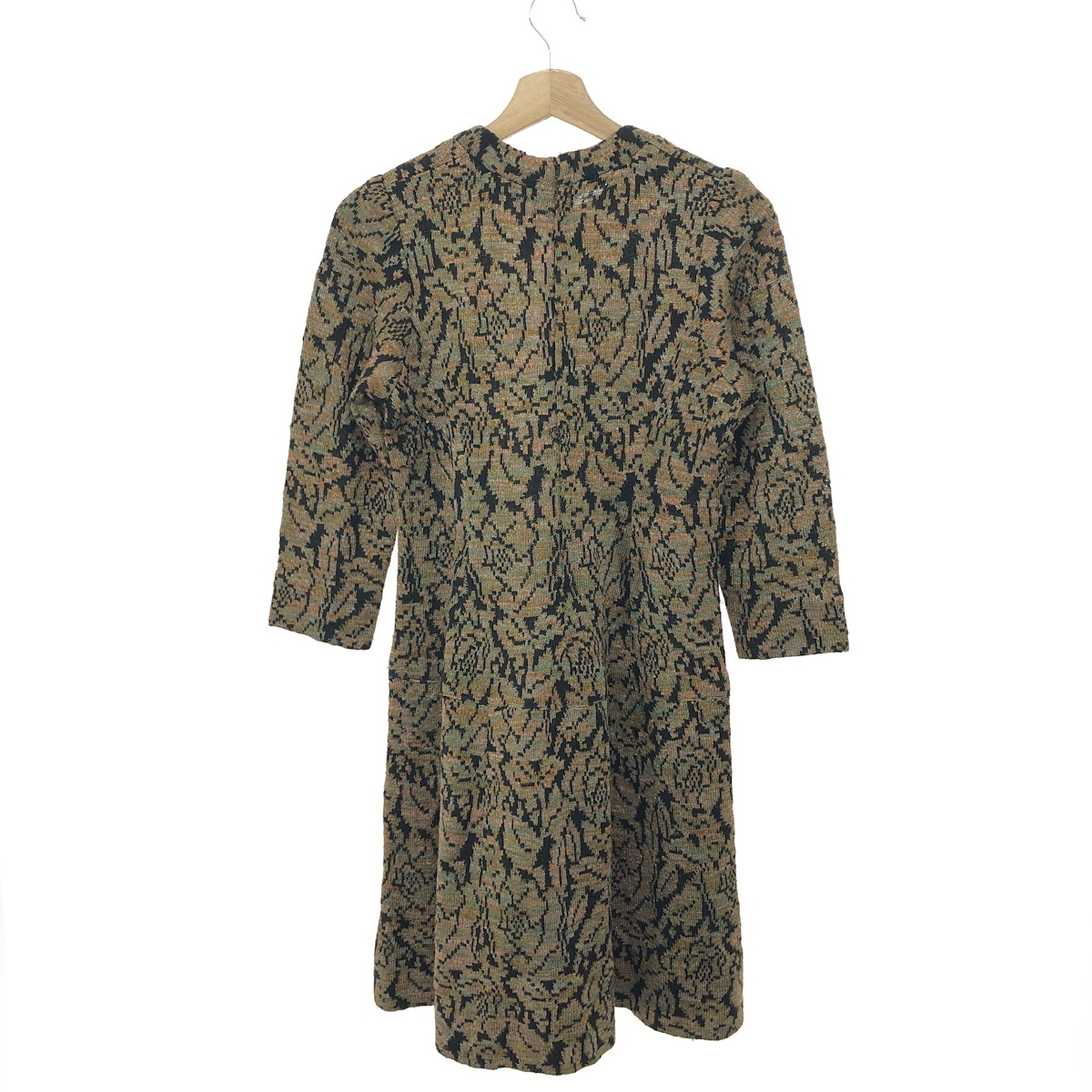 七分袖ニットワンピース 総柄/クルーネック ※素材は画像の素材タグをご確認ください。 画像にない場合は素材タグが無く素材不明となります。 |