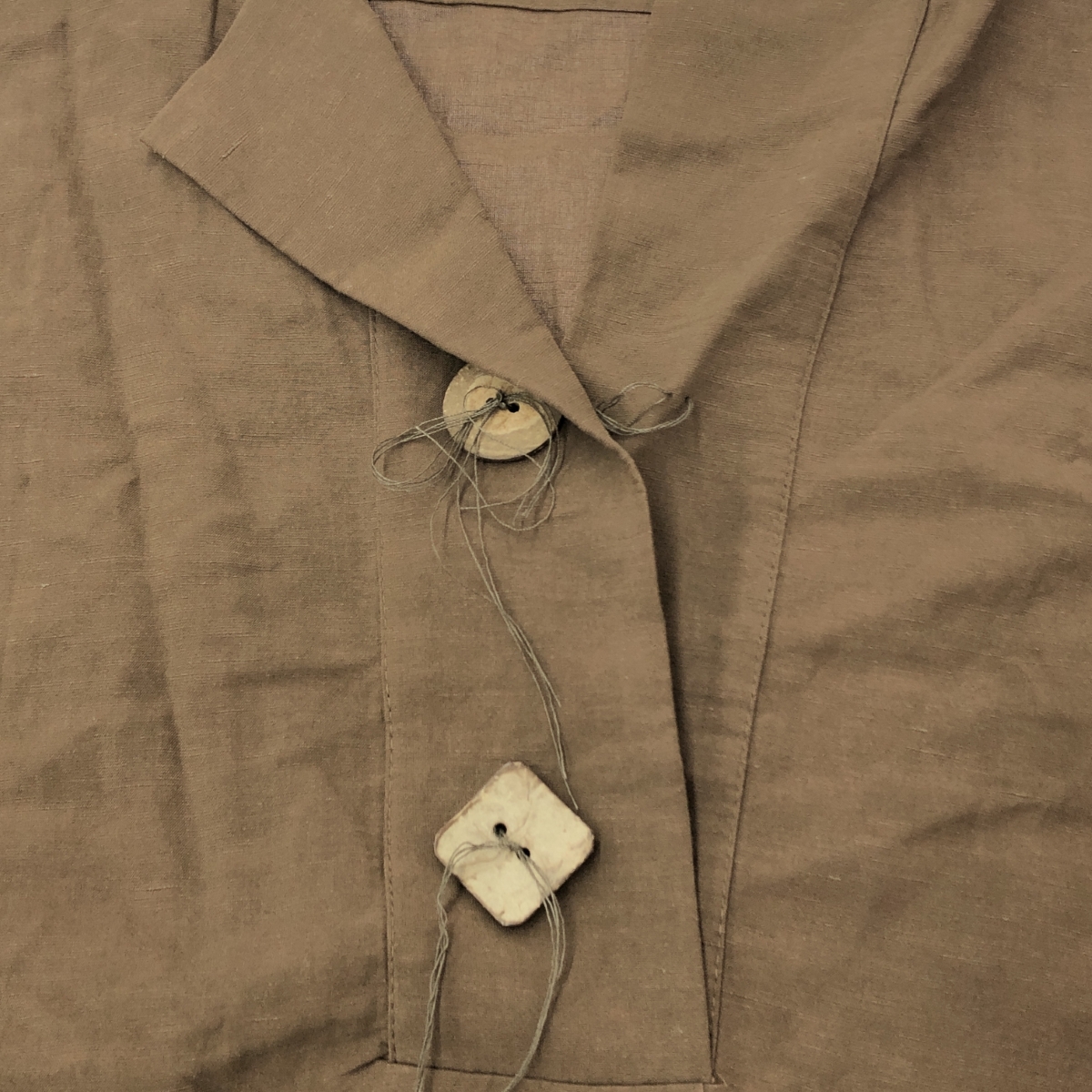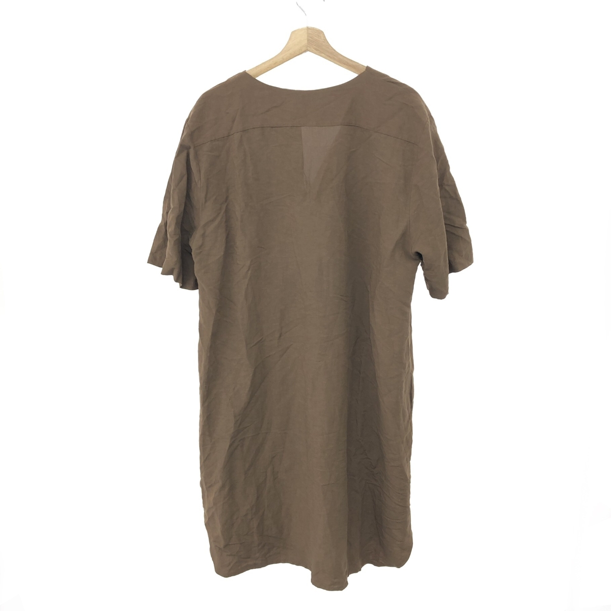 デザインリネンワンピース 半袖 ※素材は画像の素材タグをご確認ください。 画像にない場合は素材タグが無く素材不明となります。 |
