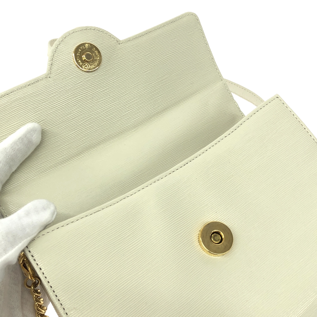 2WAYミニハンドバッグ ヴィンテージ サークル金具/HMロゴ/レザー/アイボリー |