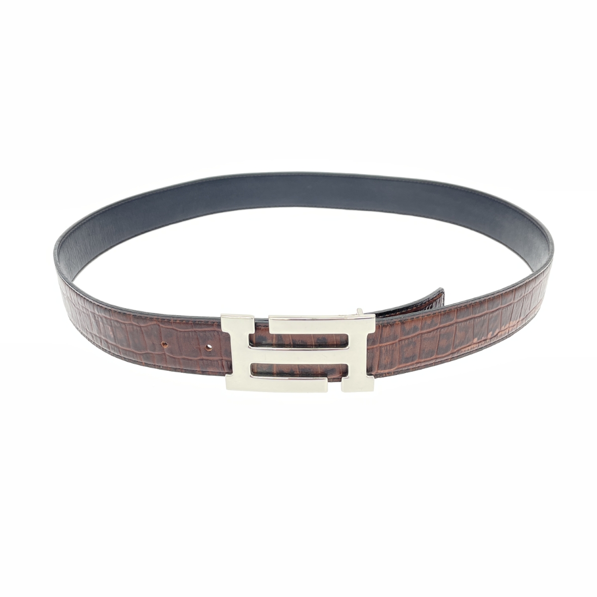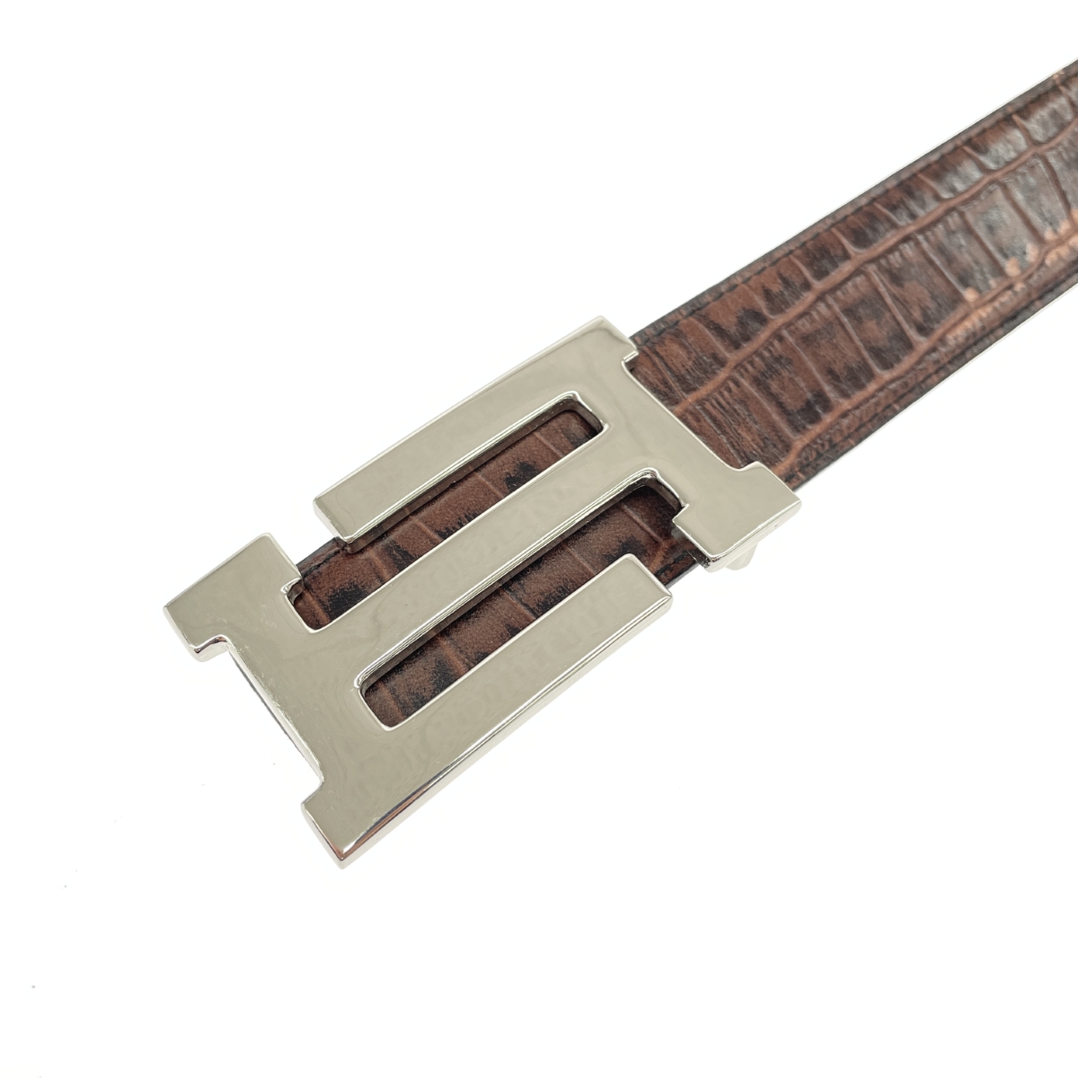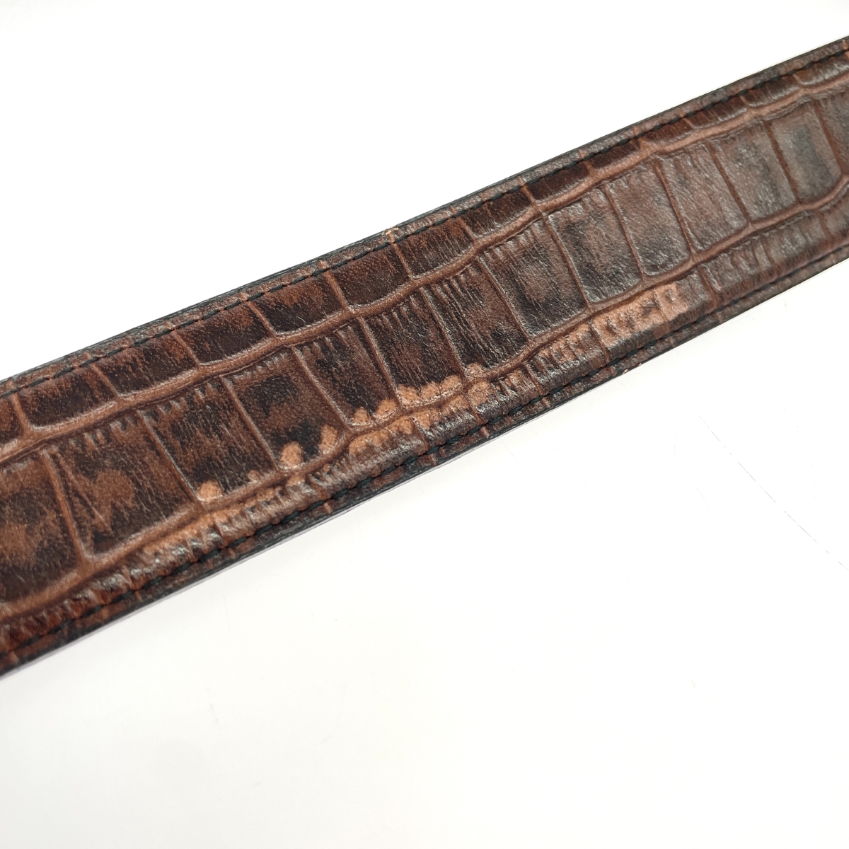 レザーベルト クロコ型押し/ダークブラウン |