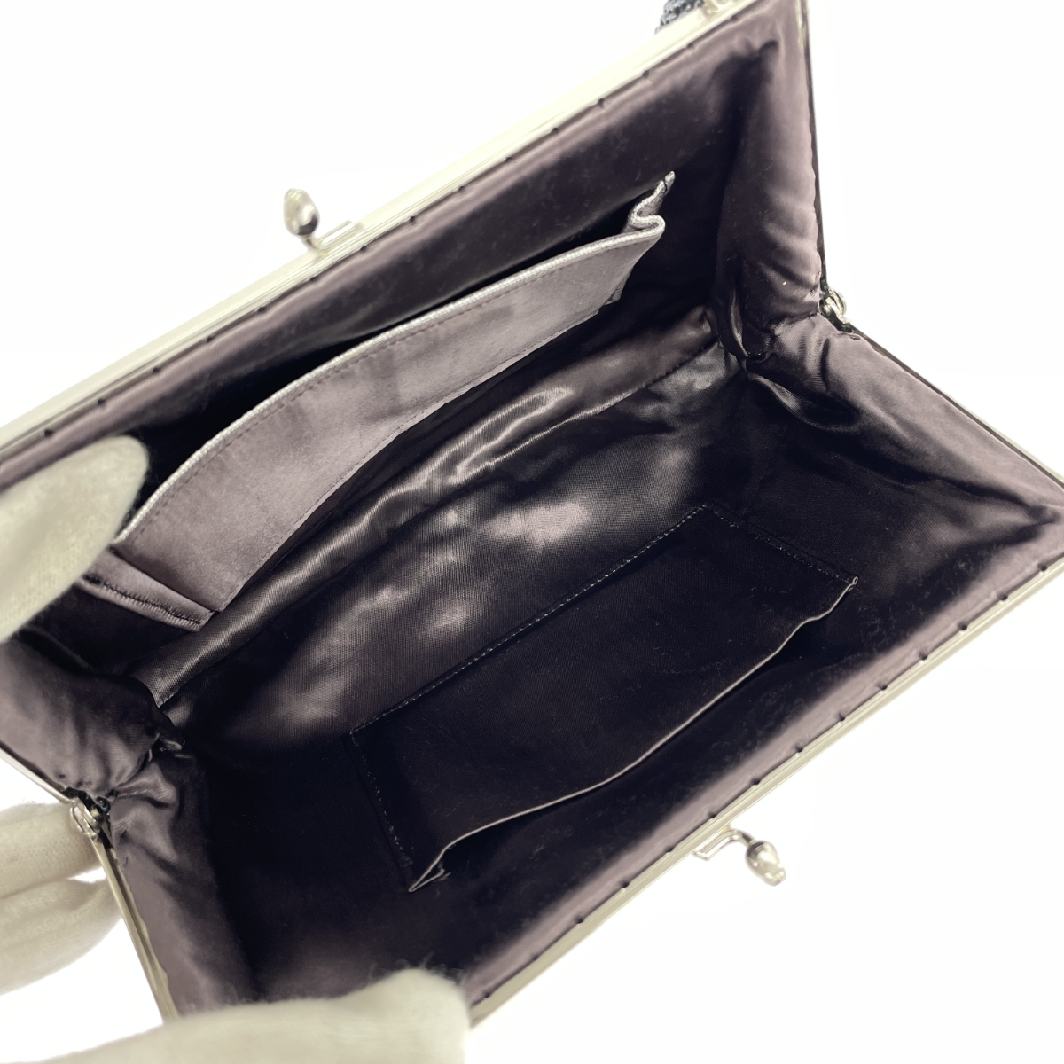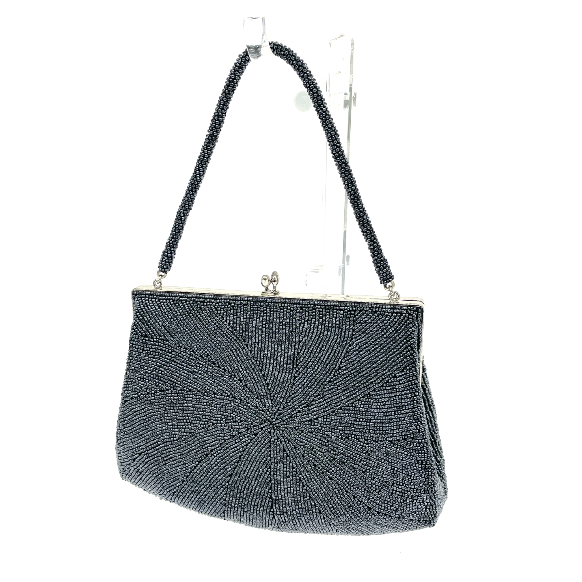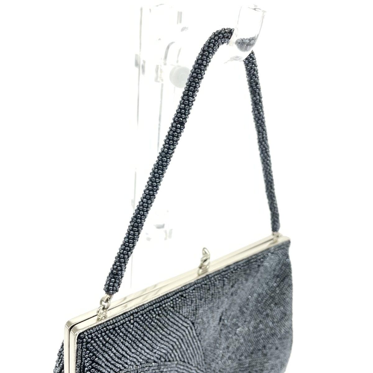 がま口ハンドバッグ 総ビーズ シルバーグレー |