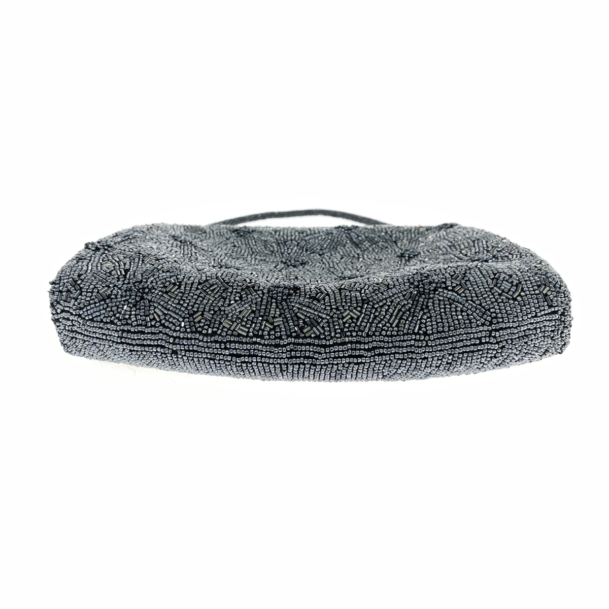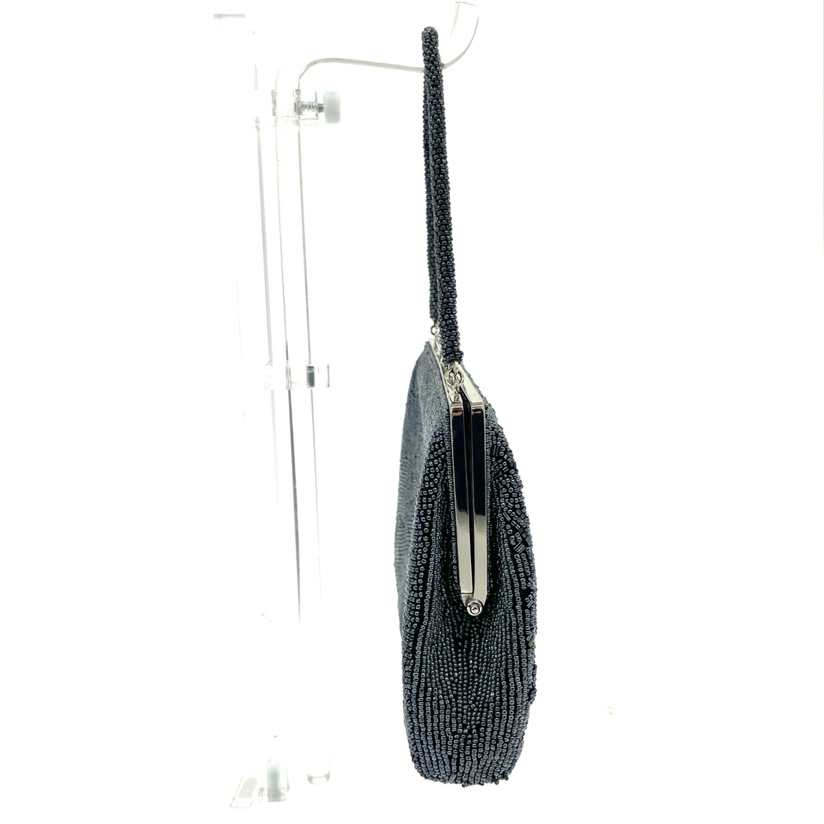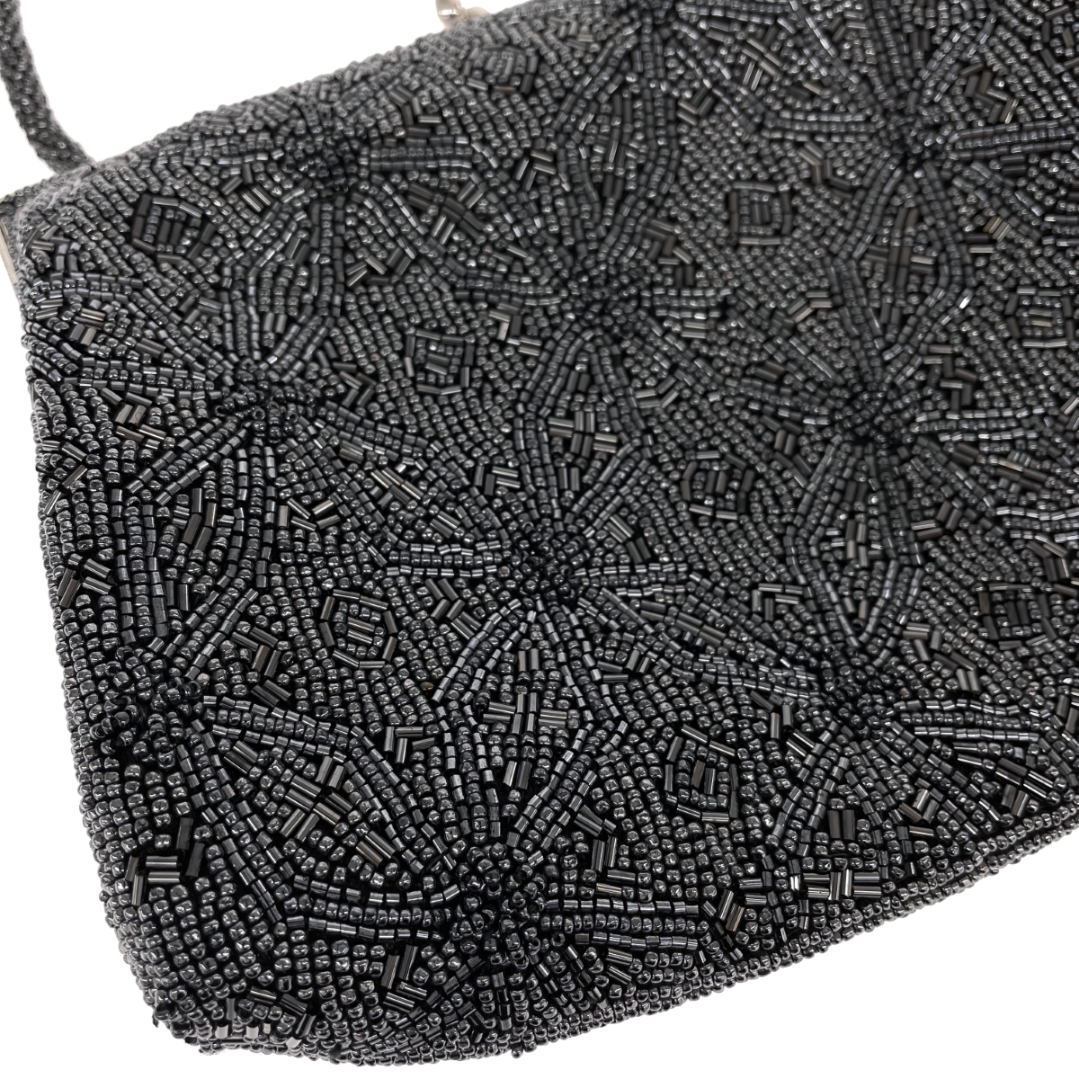 がま口ハンドバッグ 総ビーズ シルバーグレー |