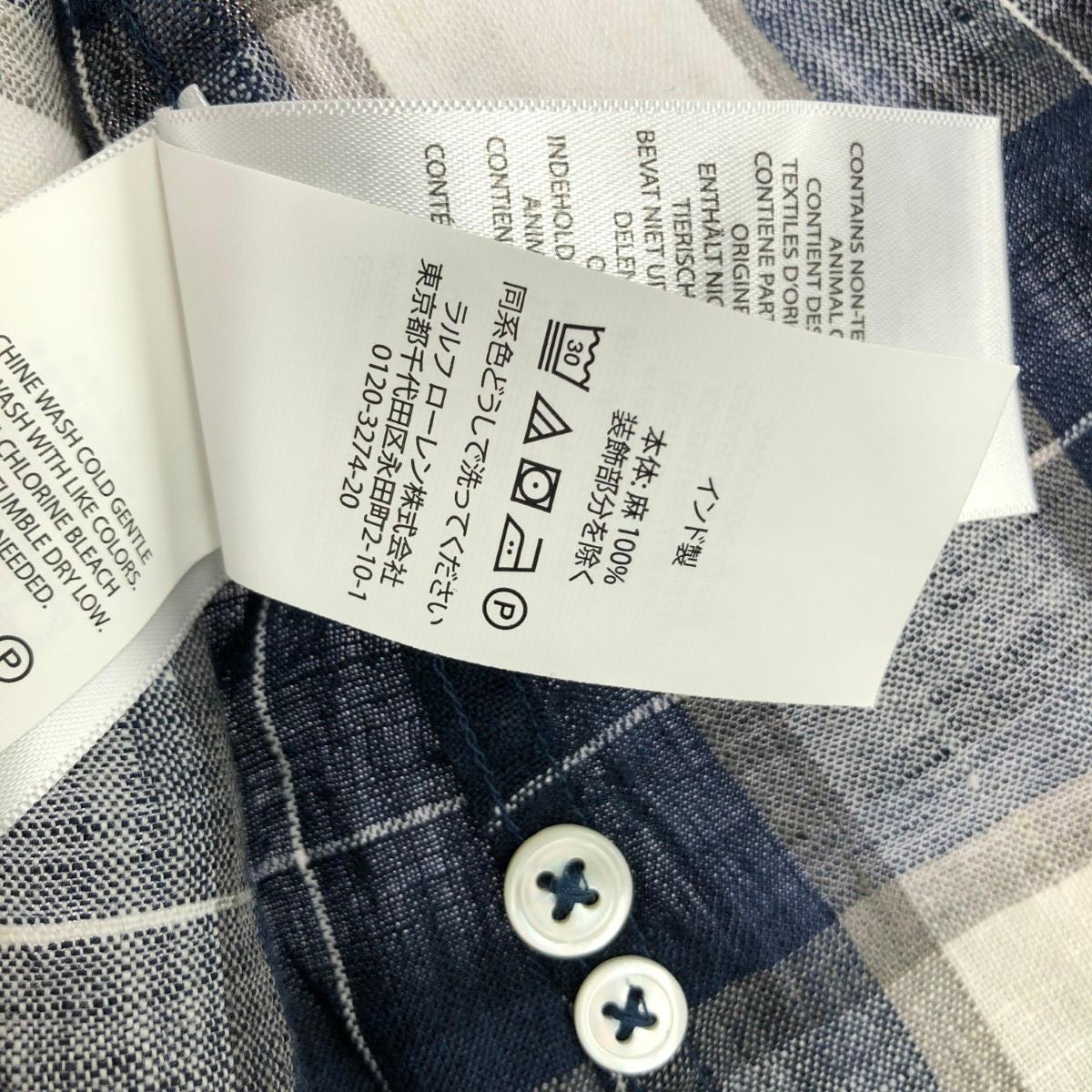長袖チェックシャツ リネン100%/ポニー刺繡 ※素材は画像の素材タグをご確認ください。 画像にない場合は素材タグが無く素材不明となります。 |