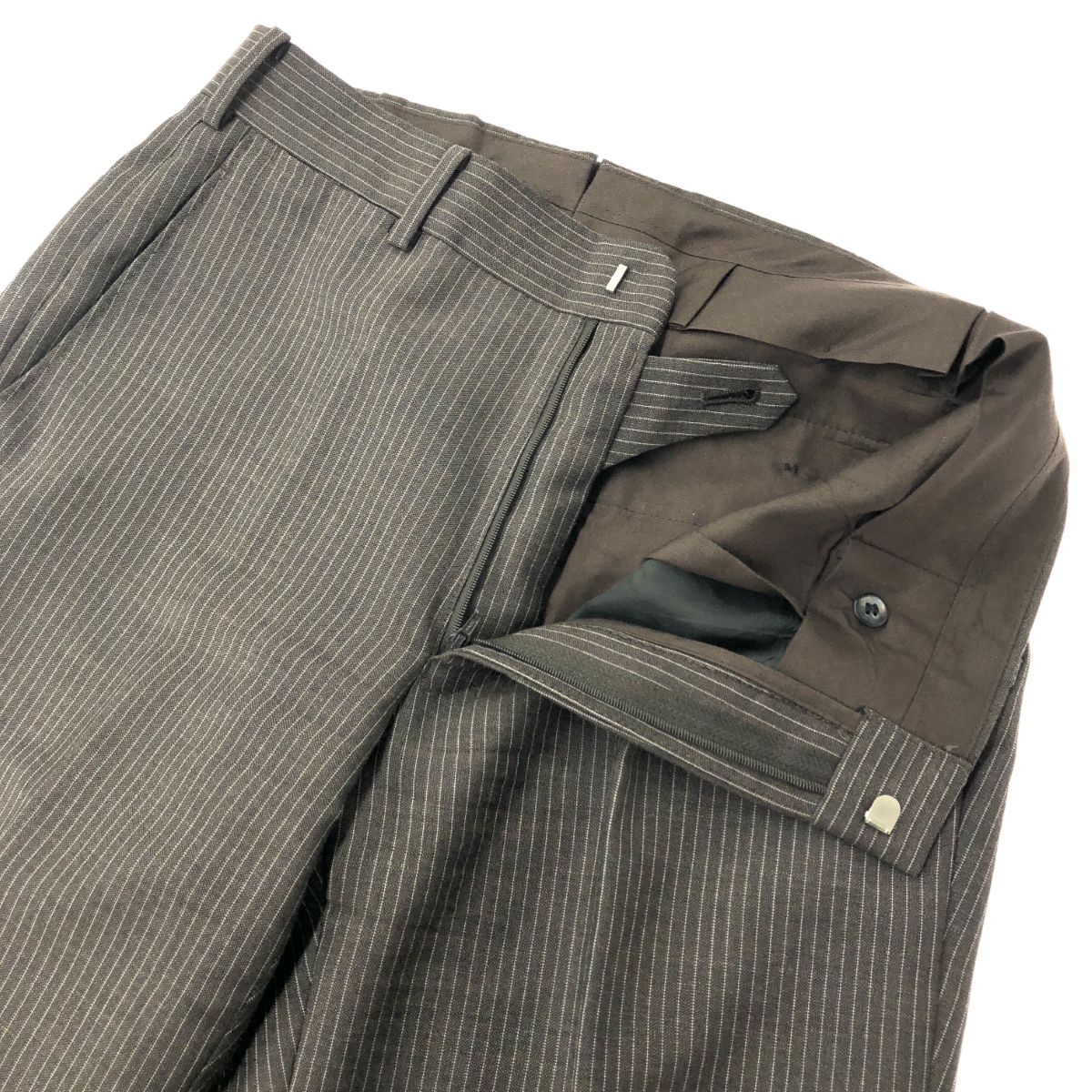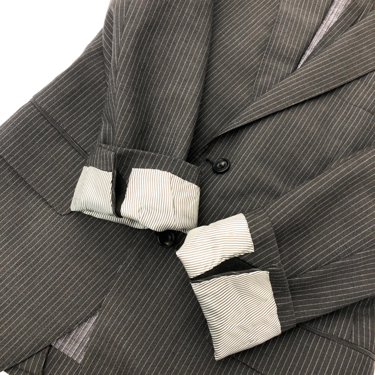 2Bストライプスーツ ウールモヘア ※素材は画像の素材タグをご確認ください。 画像にない場合は素材タグが無く素材不明となります。 |