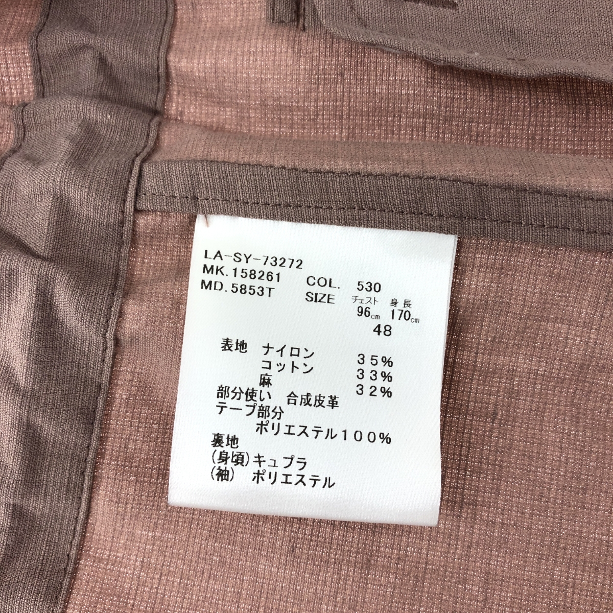 ジャケット ナイロン/コットン/リネン ※素材は画像の素材タグをご確認ください。 画像にない場合は素材タグが無く素材不明となります。 |