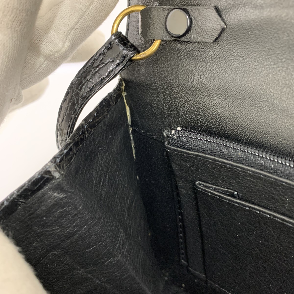 カイマン ショルダークラッチバッグ センター取り シャイニー加工 子ワニ |