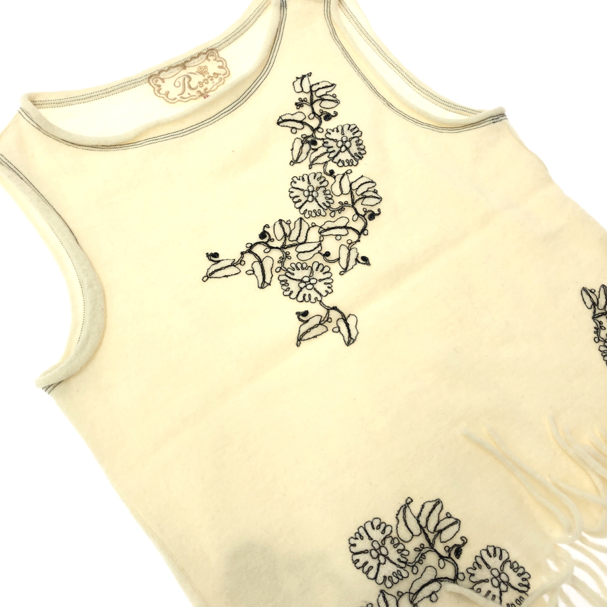 ノースリーブフリンジニット 花柄刺繍 ※素材は画像の素材タグをご確認ください。 画像にない場合は素材タグが無く素材不明となります。 |