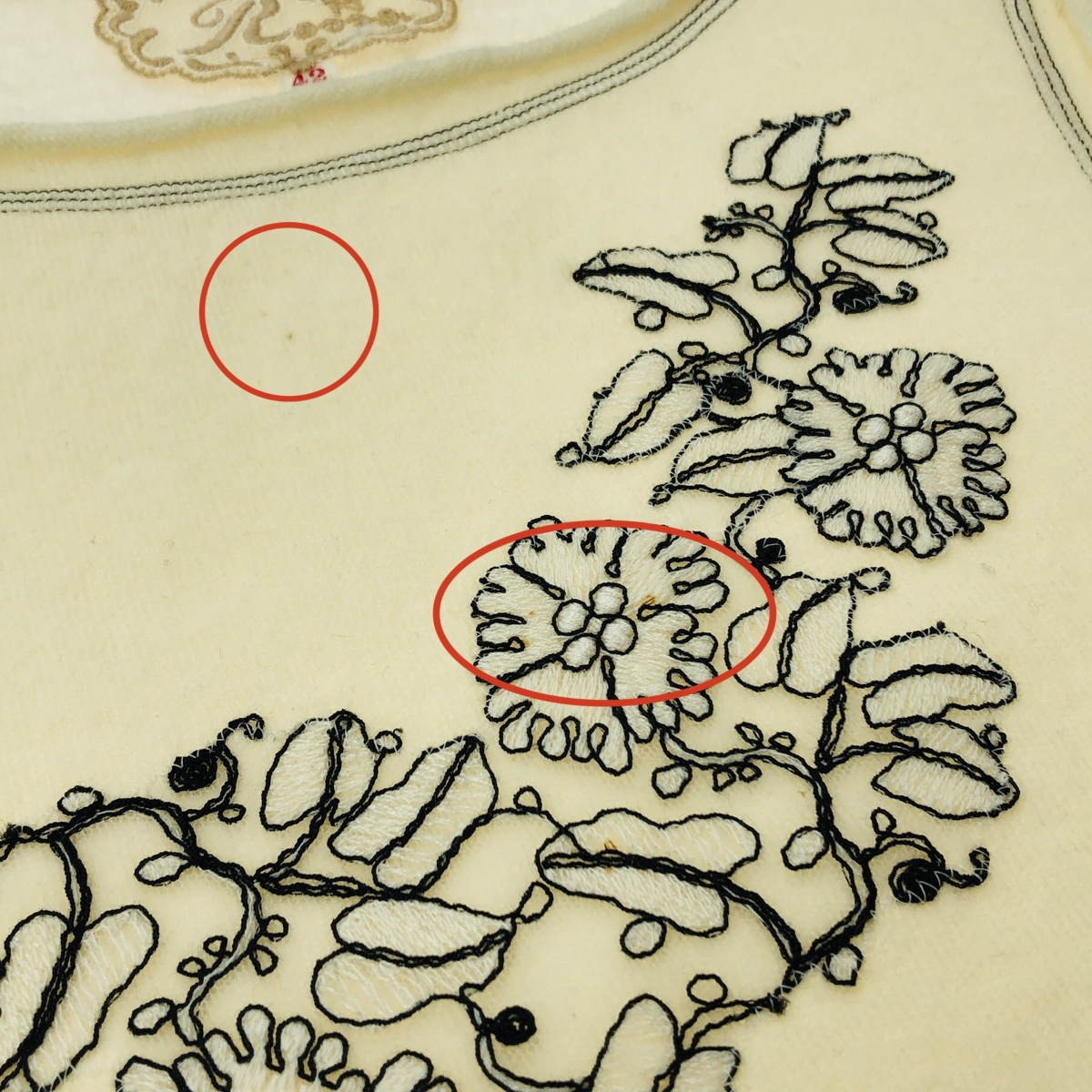 前身ごろ汚れ - ※スレ傷や汚れがある場合はその一部分のみ撮影を行っております。 画像に写っていない箇所にも同じようなスレ傷や汚れがある場合がございます。 |