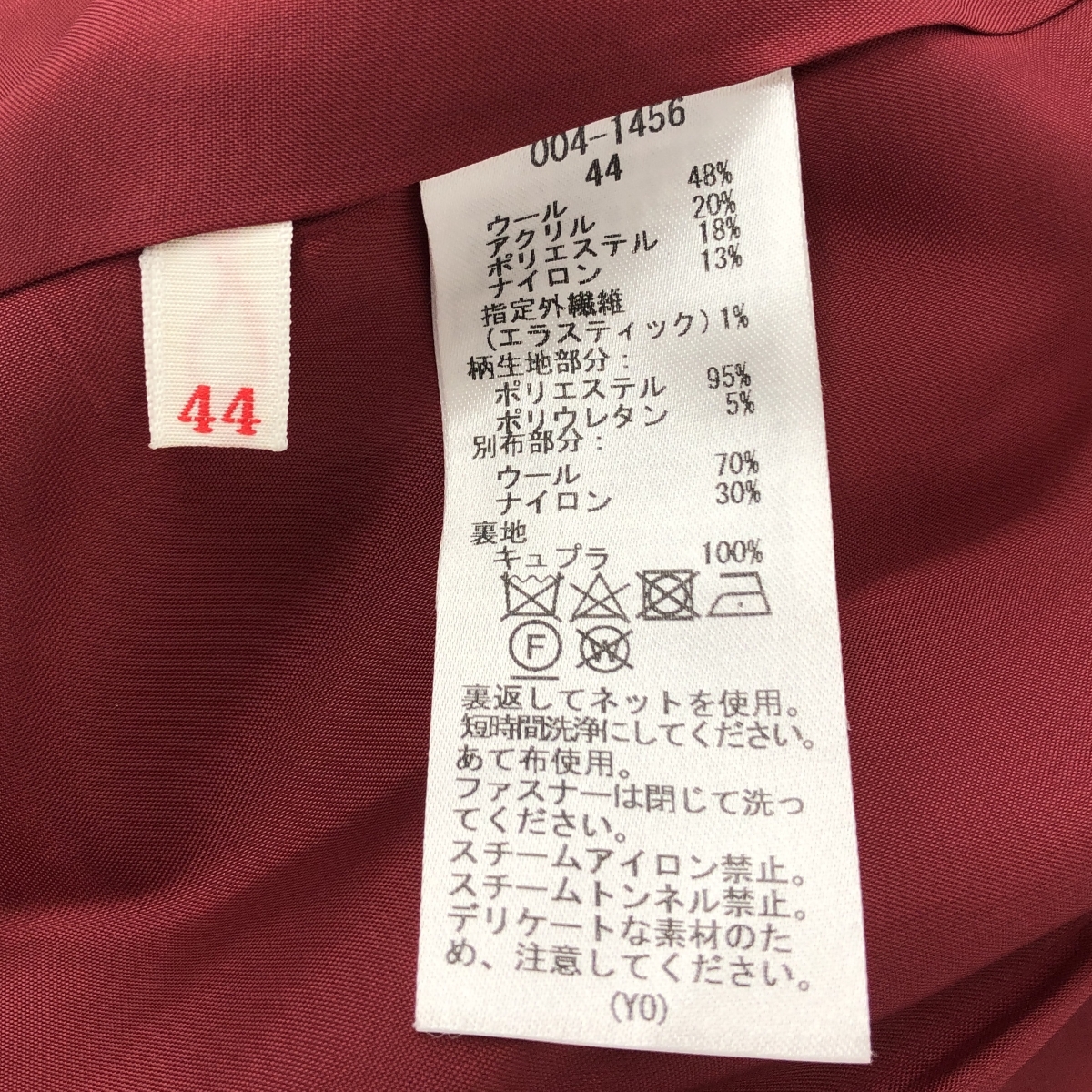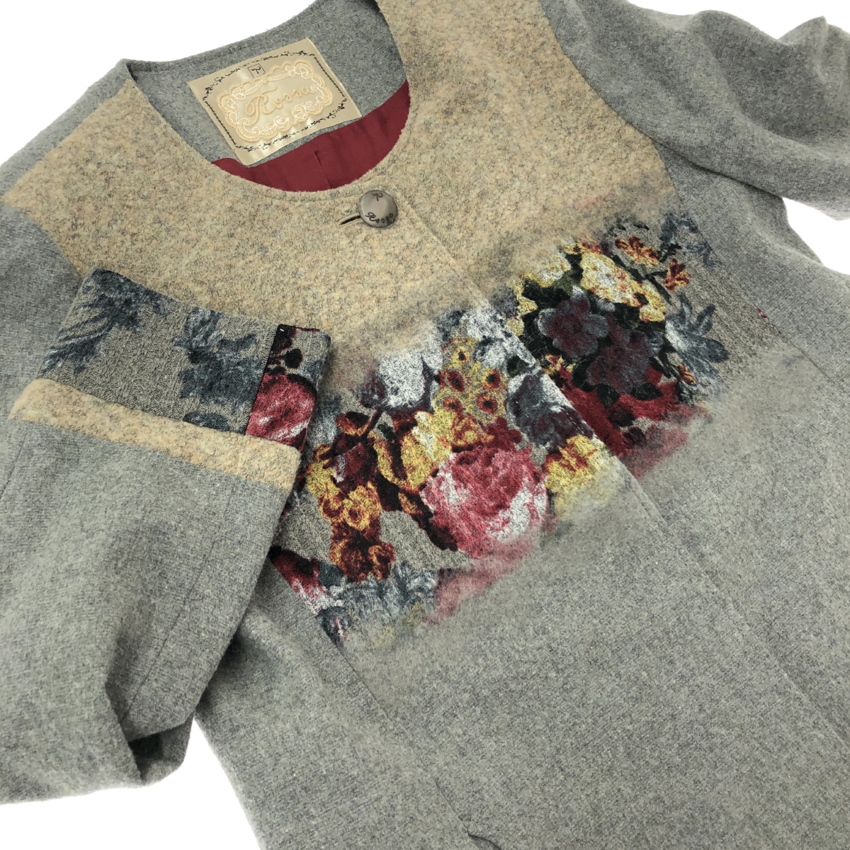 ノーカラーコート ウール/花柄 ※素材は画像の素材タグをご確認ください。 画像にない場合は素材タグが無く素材不明となります。 |