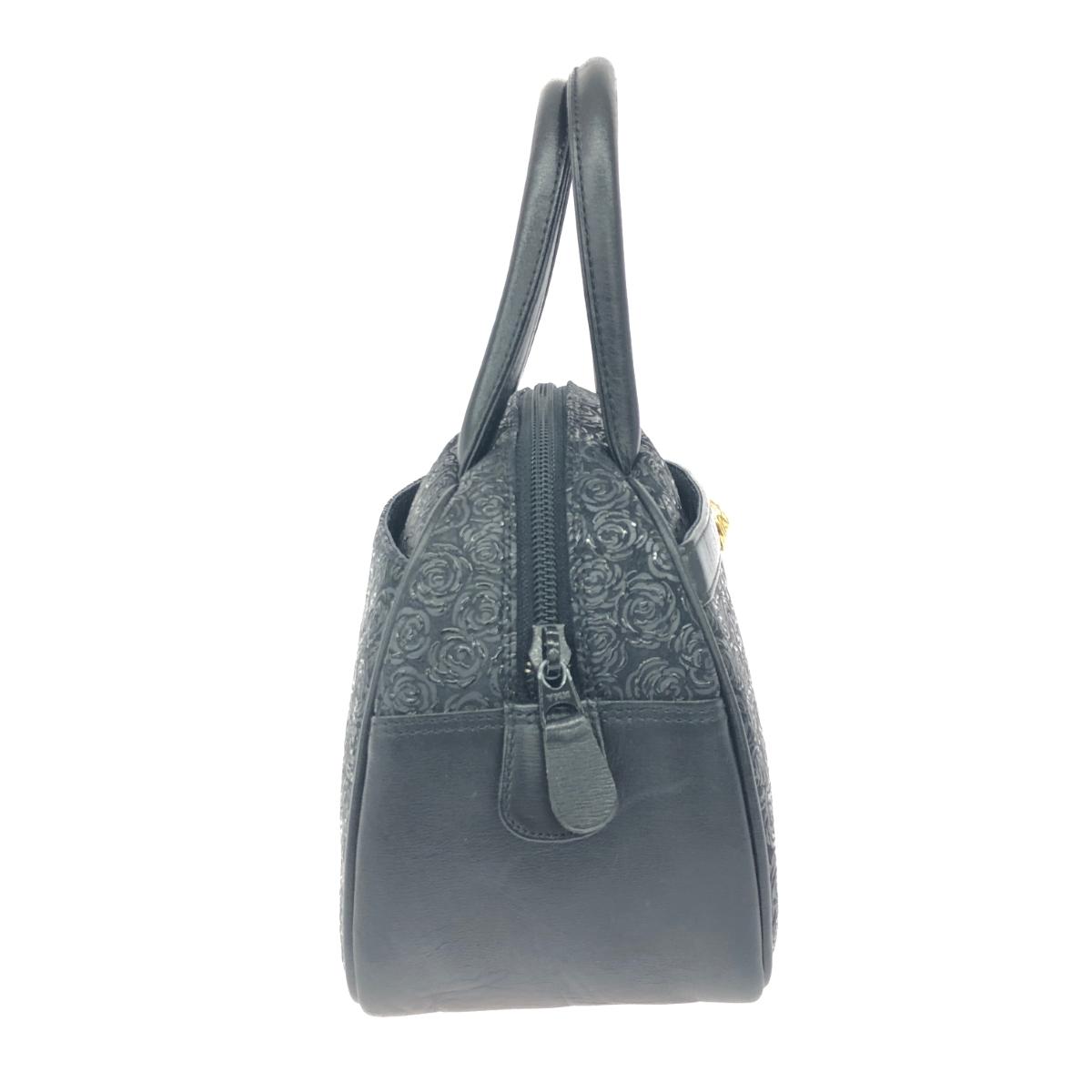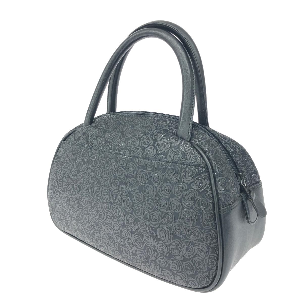 ハンドバッグ/ルミドーレ 薔薇/黒地鹿革黒漆 ファスナー式 |