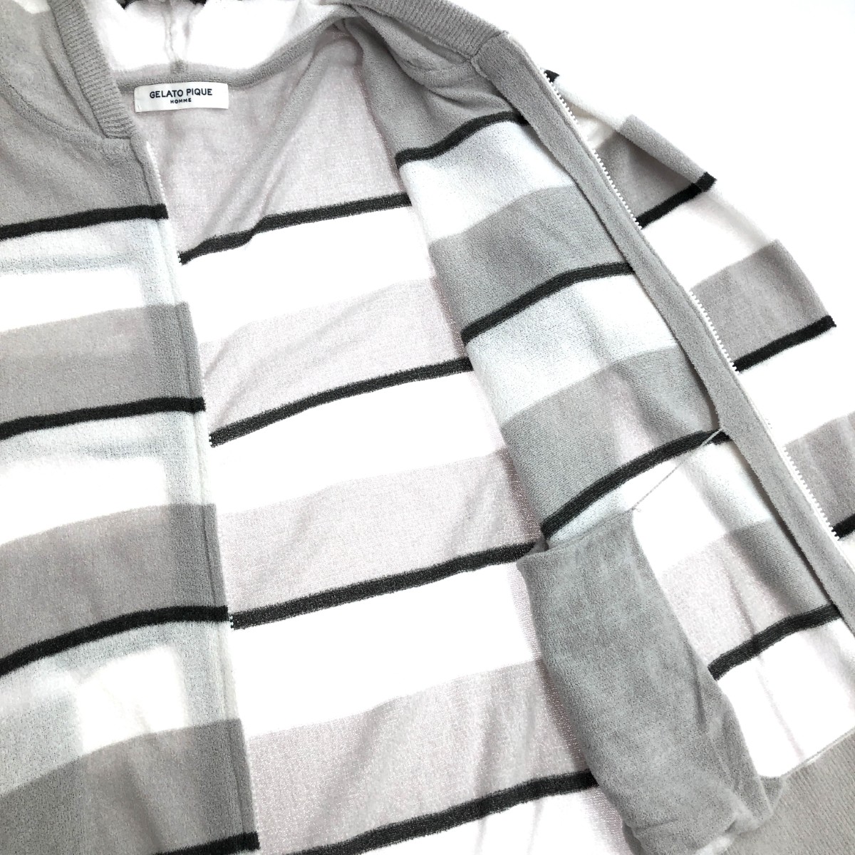 ジップアップパーカー PMNT204908 ボーダー ※素材は画像の素材タグをご確認ください。 画像にない場合は素材タグが無く素材不明となります。 |