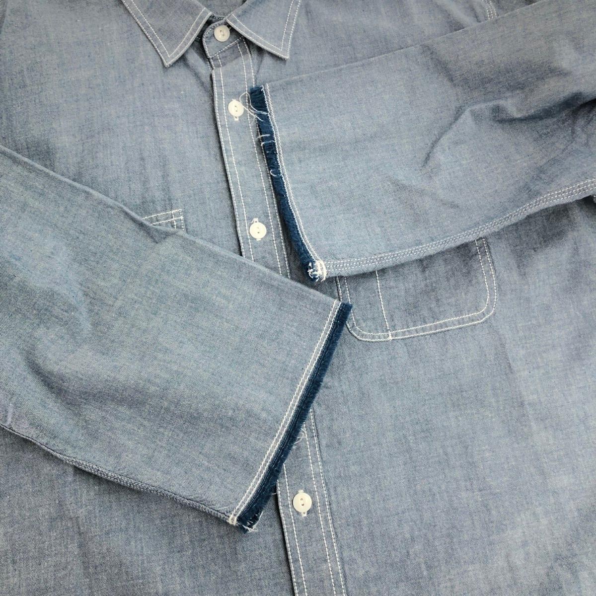 シャンブレーシャツ 切りっぱなし/コットン100% ※素材は画像の素材タグをご確認ください。 画像にない場合は素材タグが無く素材不明となります。 |