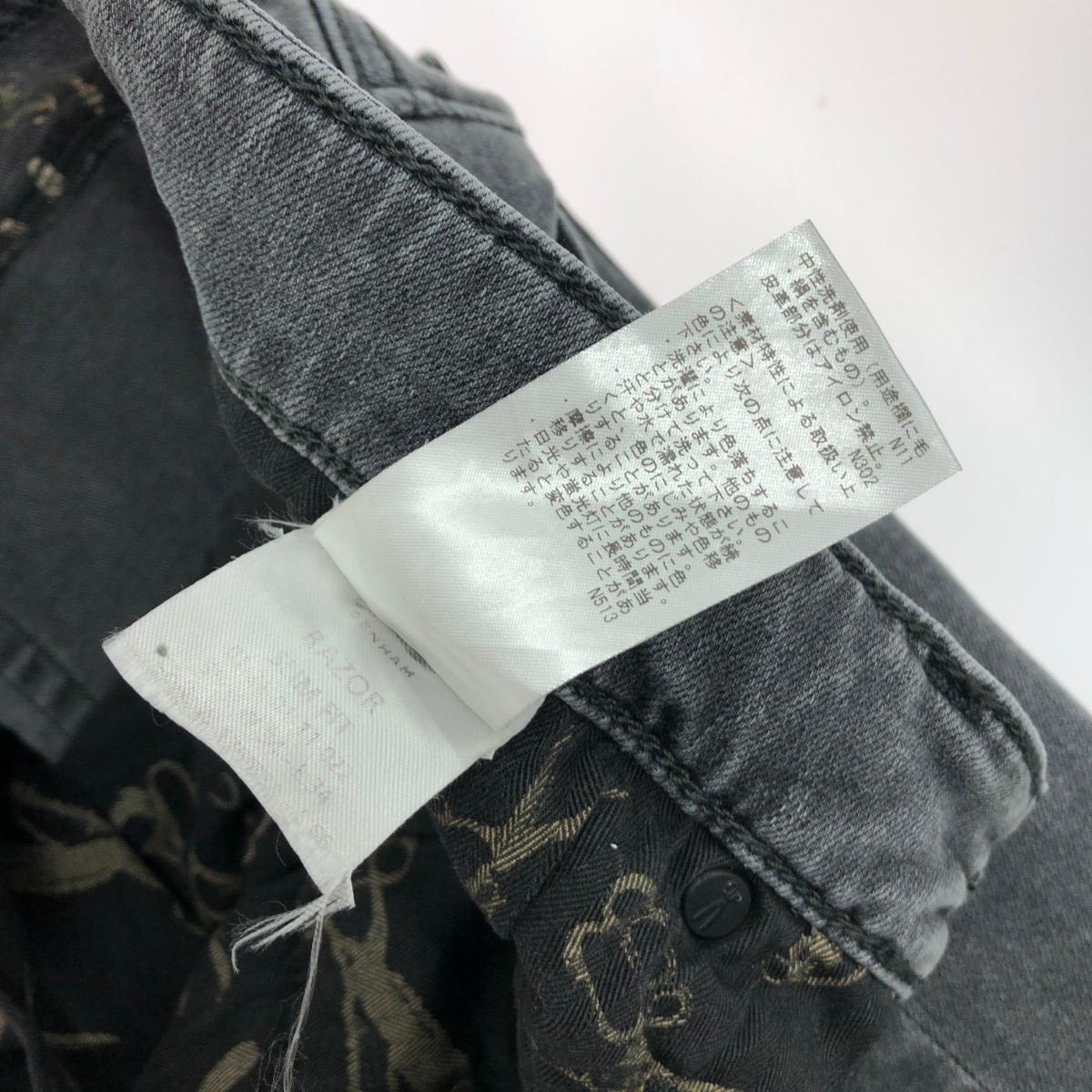ストレッチデニムパンツ 革パッチ/ボタンフライ/コットン ※素材は画像の素材タグをご確認ください。 画像にない場合は素材タグが無く素材不明となります。 |