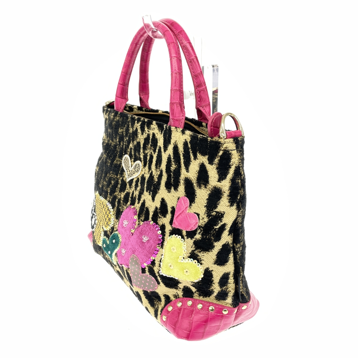 2WAYトートバッグ アニマルハート レオパード/スパンコール/ビーズ/ジャガード |