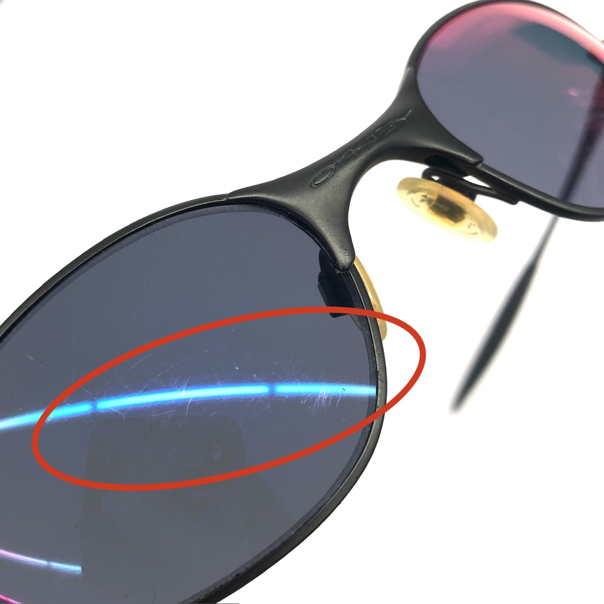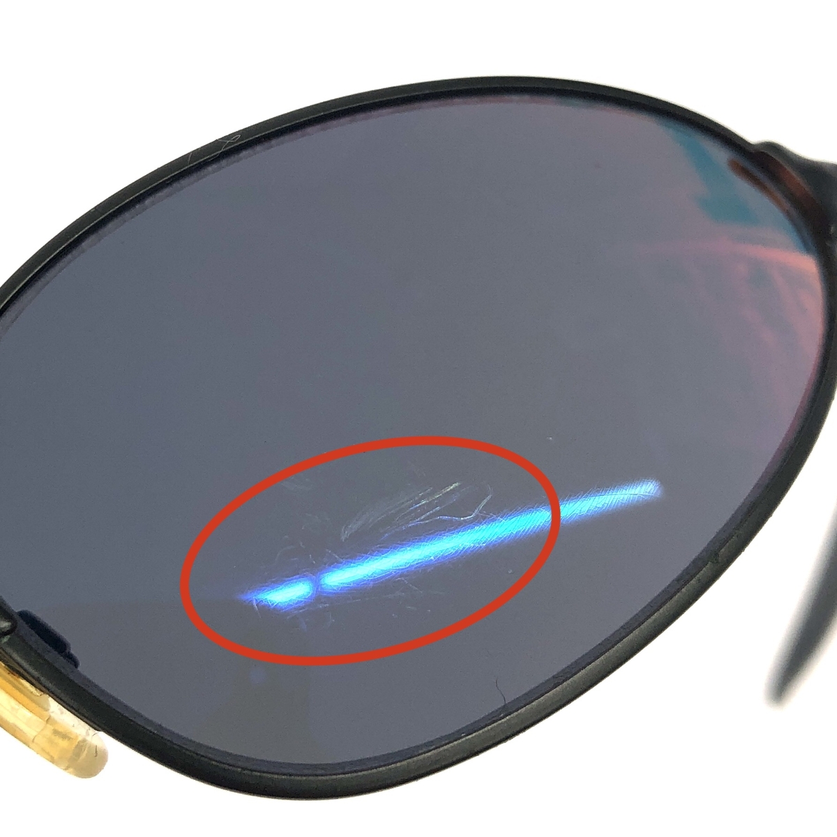 緑青×シリコン劣化×レンズキズ 【フレーム】- 【レンズ】 ※スレ傷や汚れがある場合はその一部分のみ撮影を行っております。 画像に写っていない箇所にも同じようなスレ傷や汚れがある場合がございます。 |