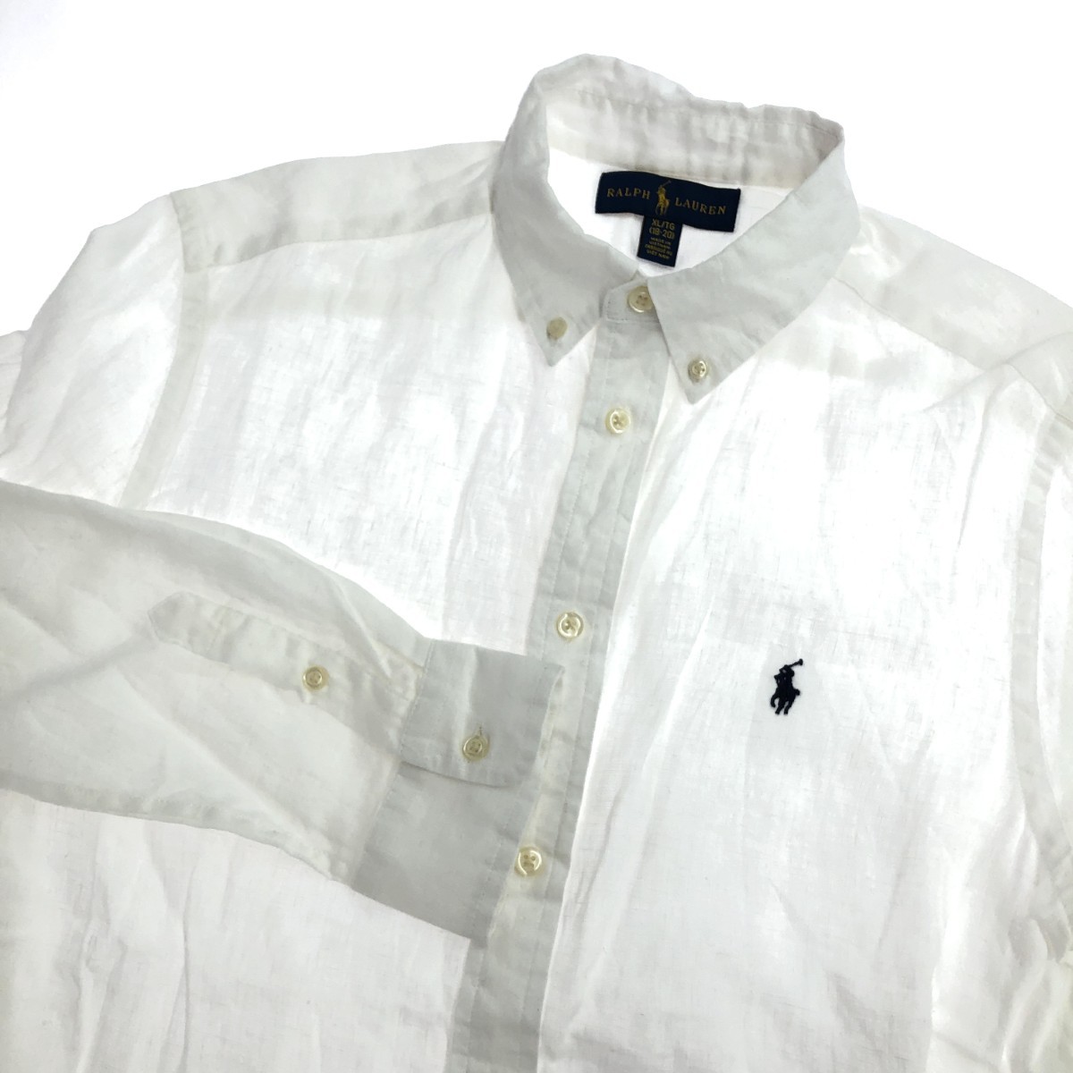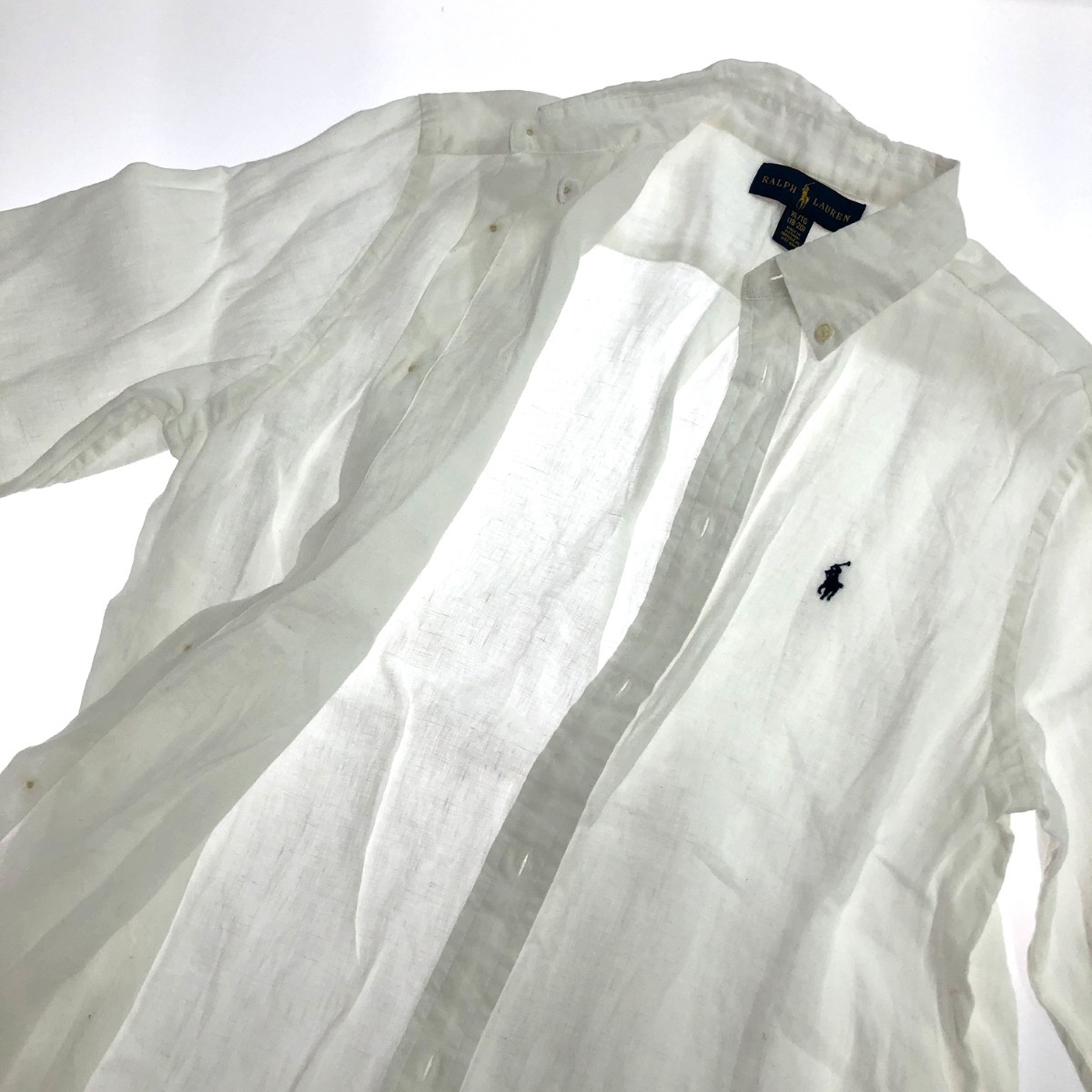 長袖ボタンダウンシャツ 18-20/リネン100%/ポニー刺繍 ※素材は画像の素材タグをご確認ください。 画像にない場合は素材タグが無く素材不明となります。 |